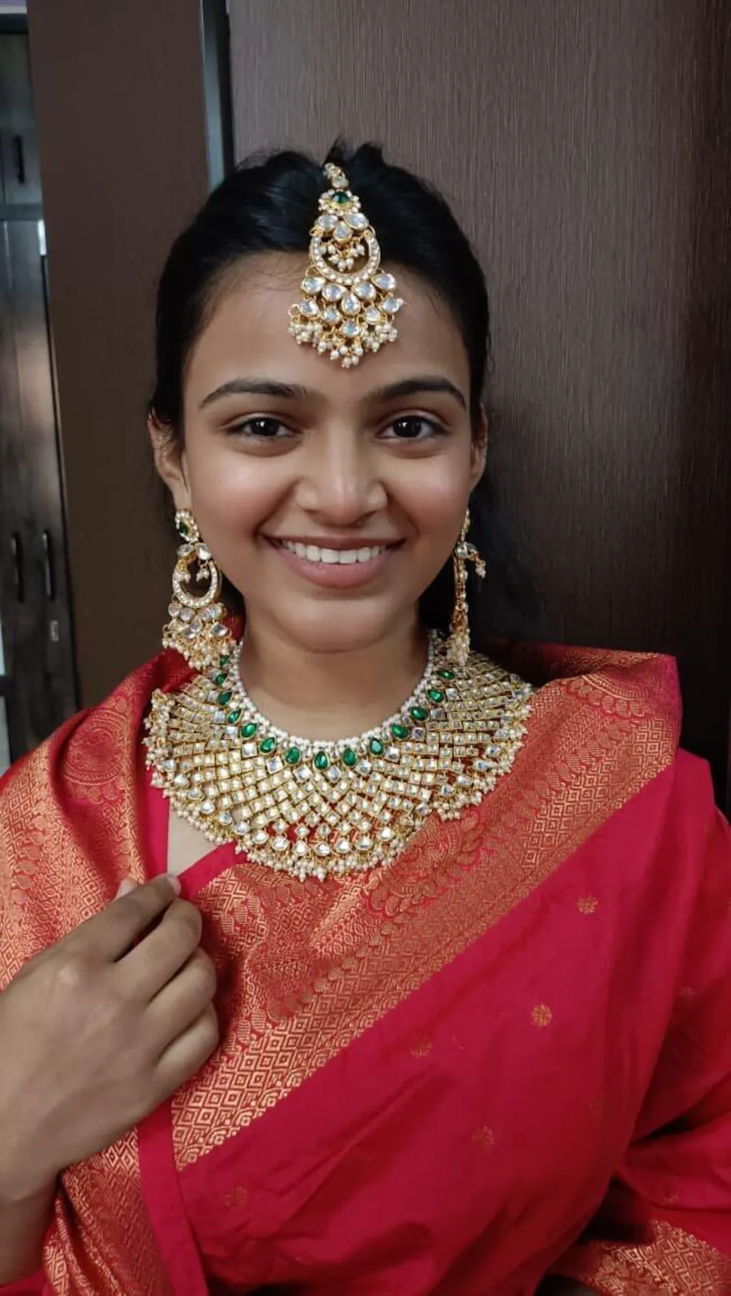 Dimensions: Necklace Length - 23 cm, Necklace Width - 7 cm, Earring Height - 8 cm, Earring Width - 5 cm & Maang Tikka Length - 20.8 cm, Maang Tikka Width - 5 cm