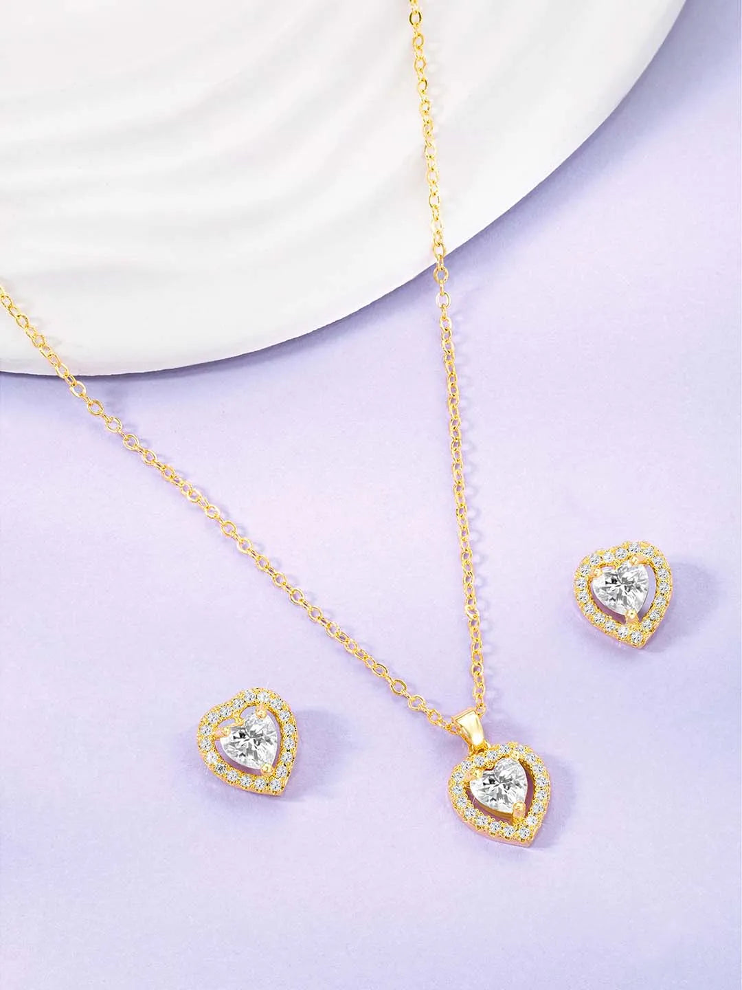 Product Name: Radiant Sleek Sparkle CZ Necklace Set - Gold