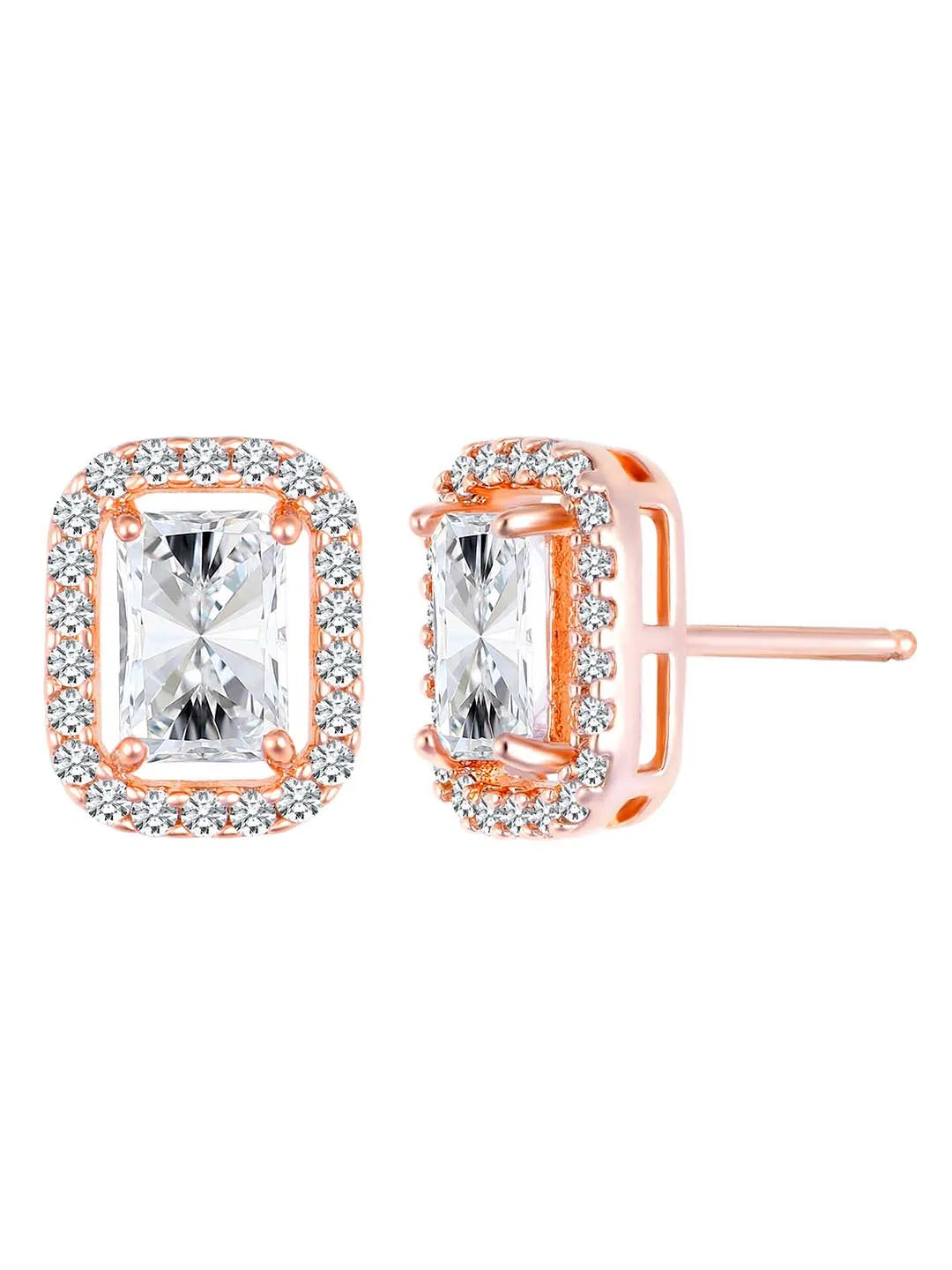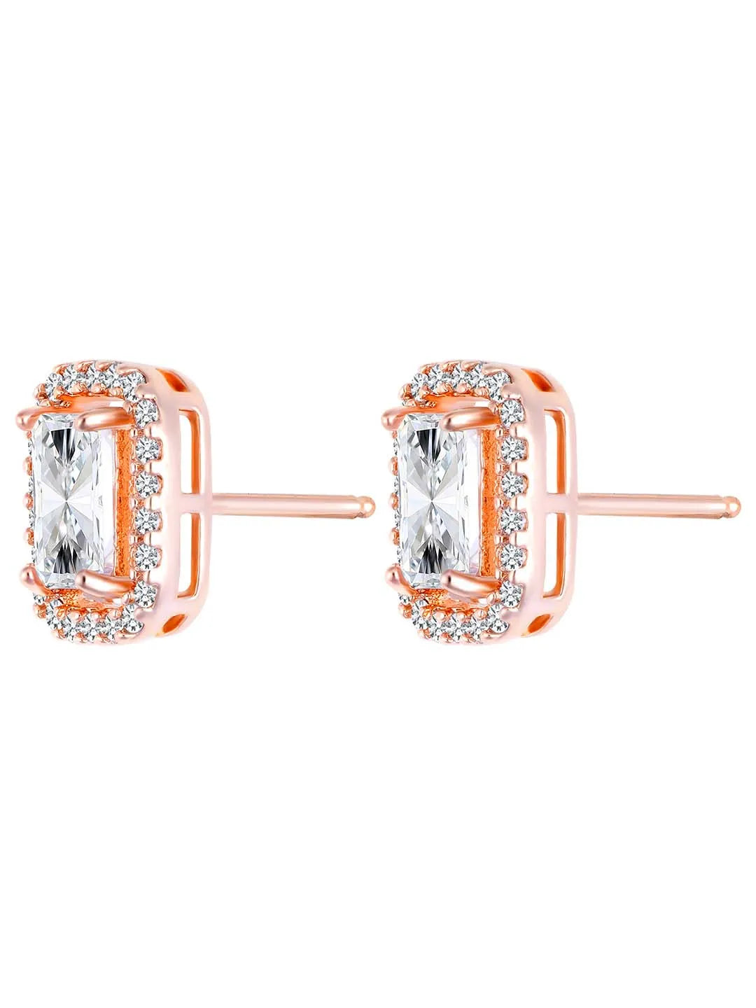 Product Name: Radiant Sparkle CZ Studs Earrings - Rose Gold