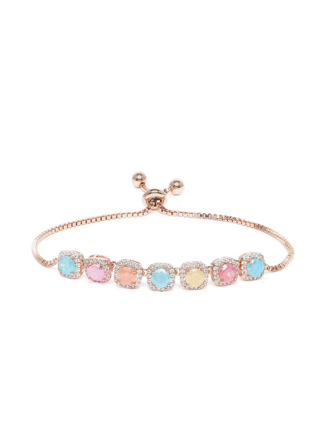 Product Name: Rainbow Crystal Stone Box Chain Bracelet - Rose Gold - Multi