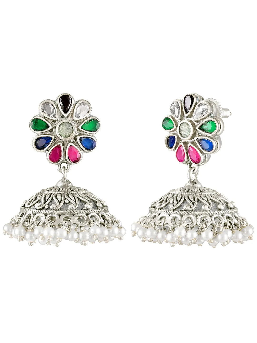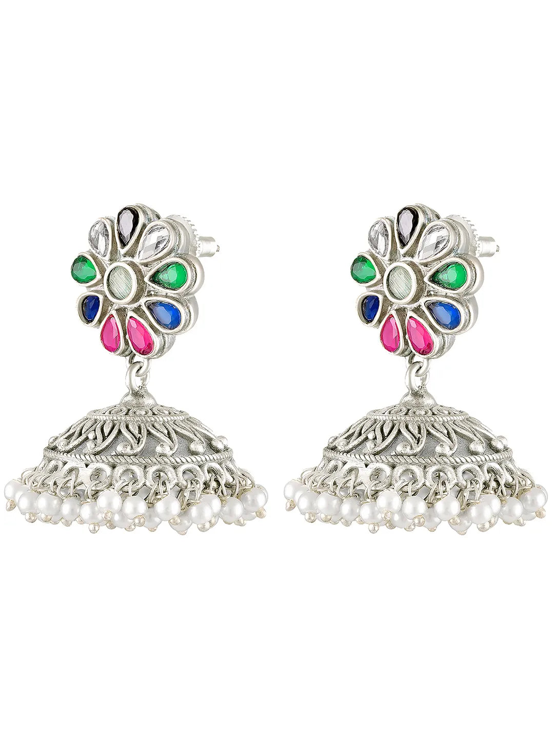 Product Name: Regal Crystal Oxidized Jhumka Earrings