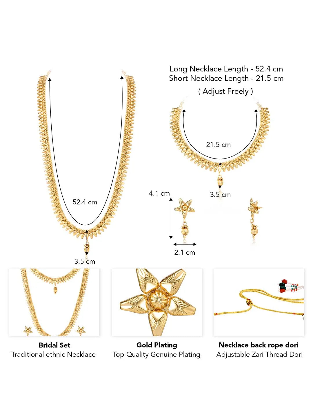 Dimensions: " Long Necklace: 52.4 cm Width: 3.5 cm; Short Necklace: 21.5 cm Width: 3.5 cm; Earrings Length: 4.1 cm Width: 2.1 cm