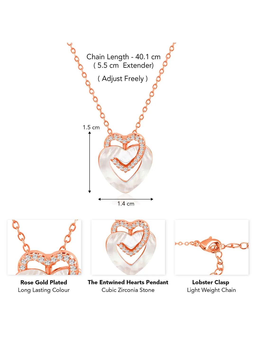 Product Name: Romance Heart CZ Pendant Chain - Rose Gold