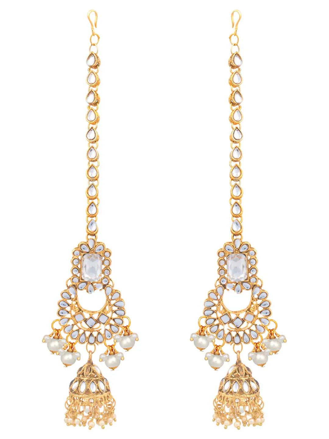 Dimensions: Long Necklace Length: 77.5 cm Width: 8.5 cm Short Necklace Length: 21.5 cm Width: 9.6 cm Earrings Length: 8.3 (Ear Chain-9.5) Width: 3.9 cm Nose Pin Ring-18.5 cm 5.5 cm Haath Panja Length: 17 cm Width: 13 cm Passa Length: 10.1 cm Width: 7.5 cm Matha Patti Length: 27.7 cm Width: 16.6 cm