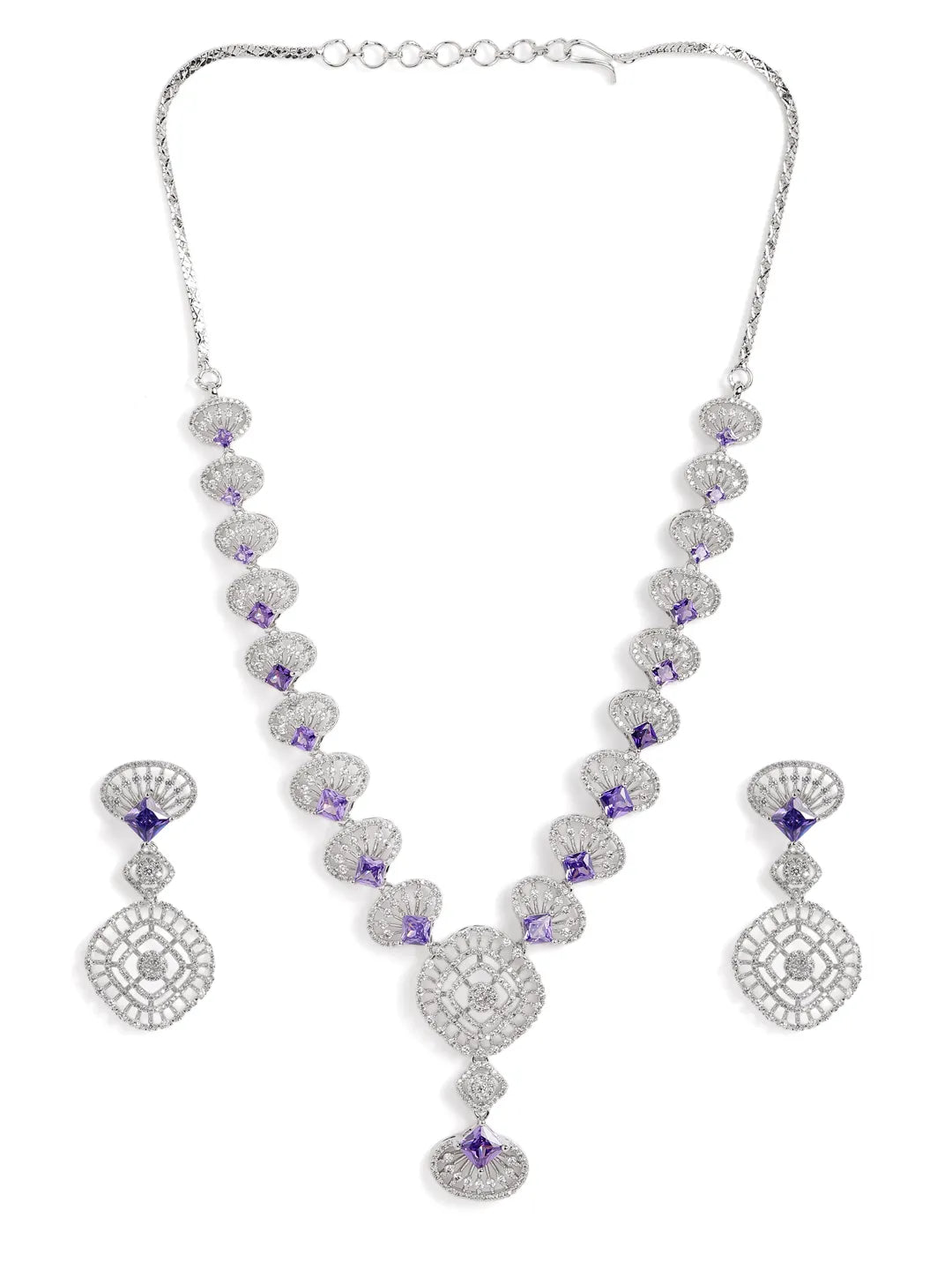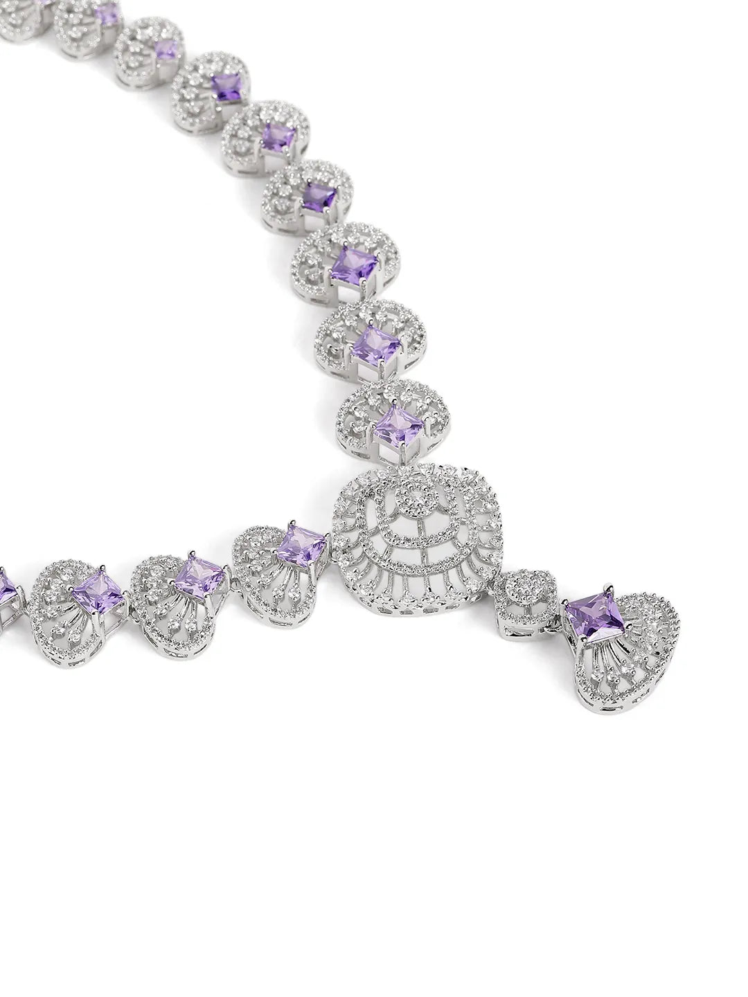 Product Name: Rosaline Grace Fan Pattern Necklace Set - Purple