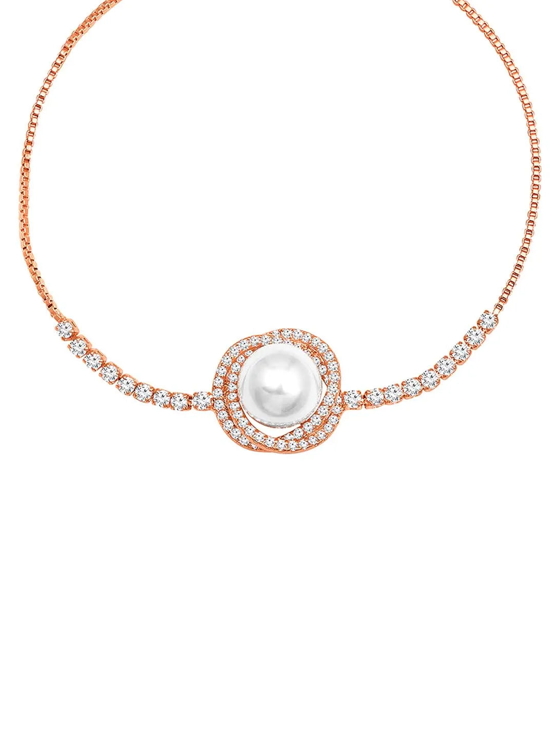 Product Name: Rose Gold Pearl Accent CZ Adjustable Bracelet
