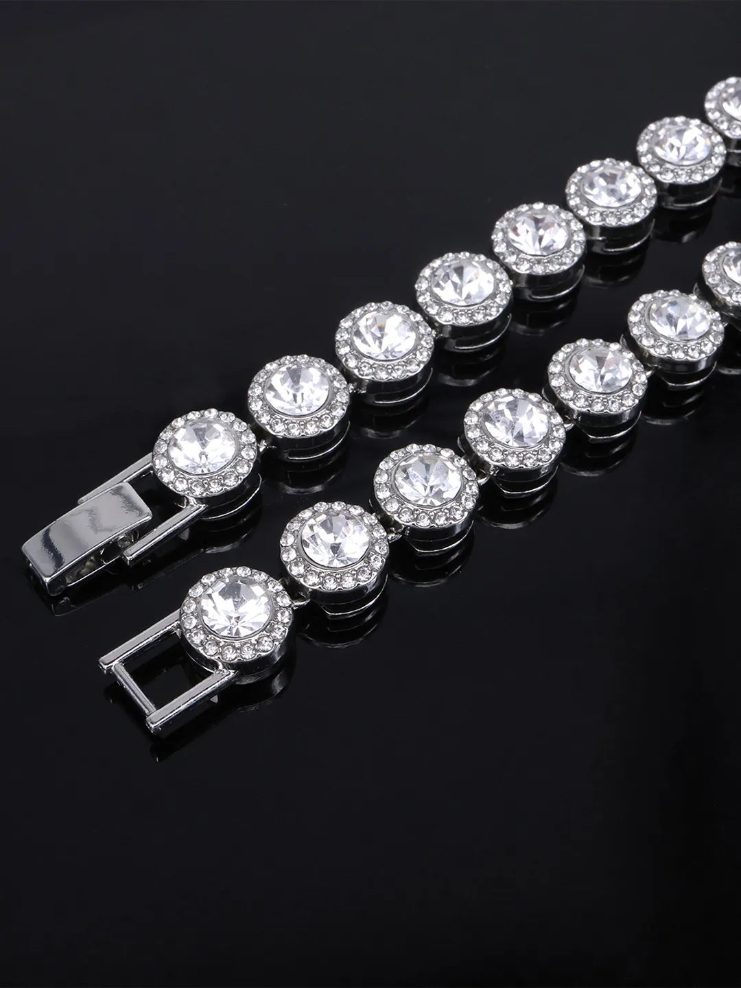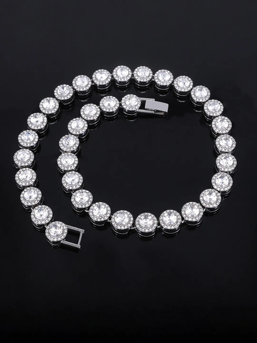 Product Name: Round Crystal & CZ Tennis Necklace Set - Silver