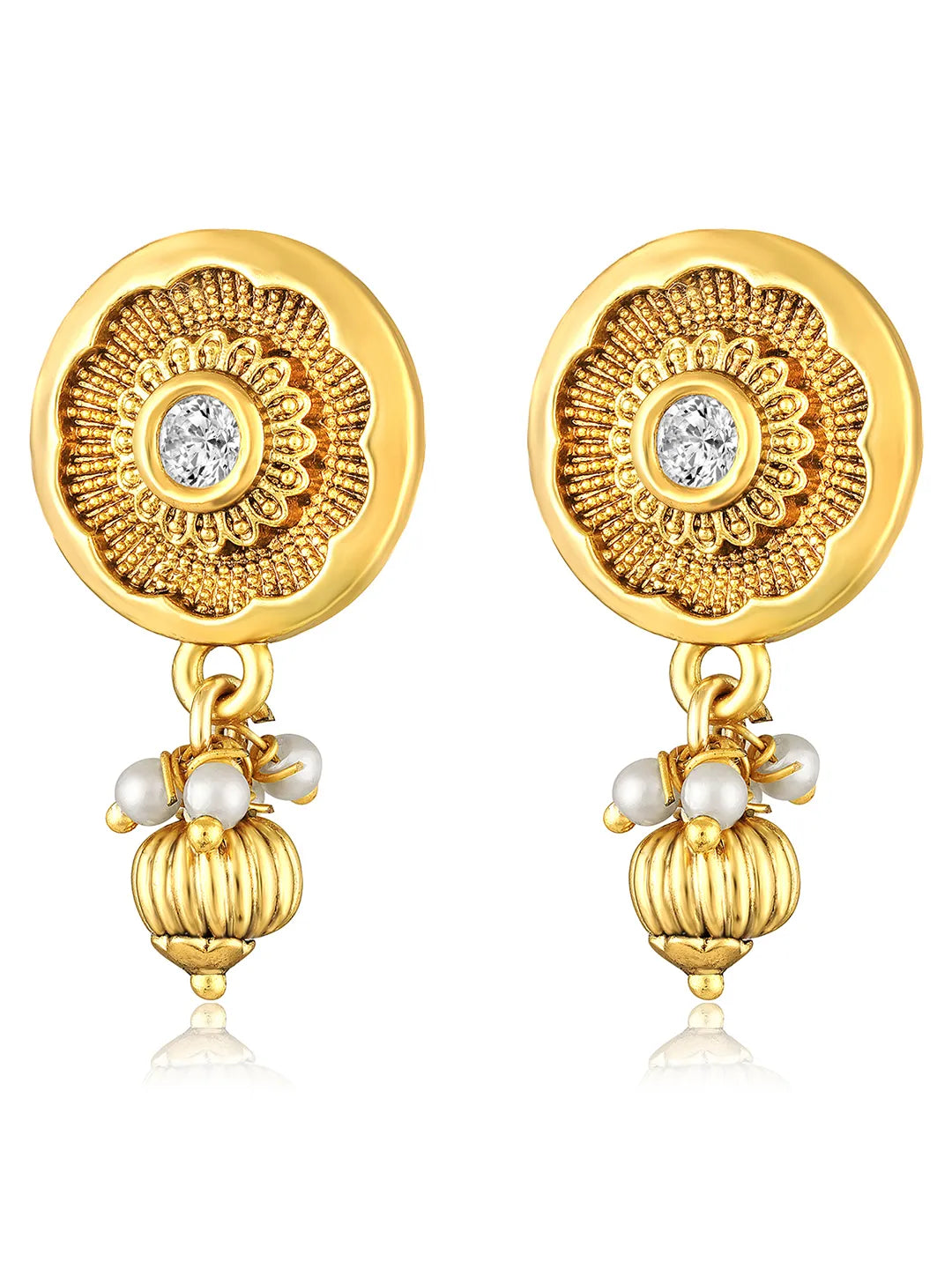 Product Name: Round Floral Pearl Stud Drop Earrings