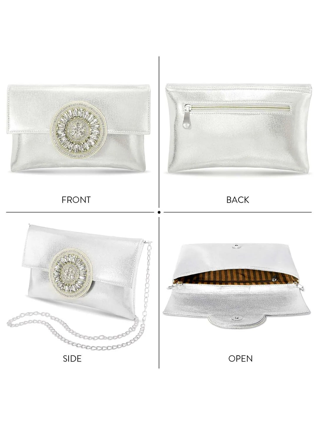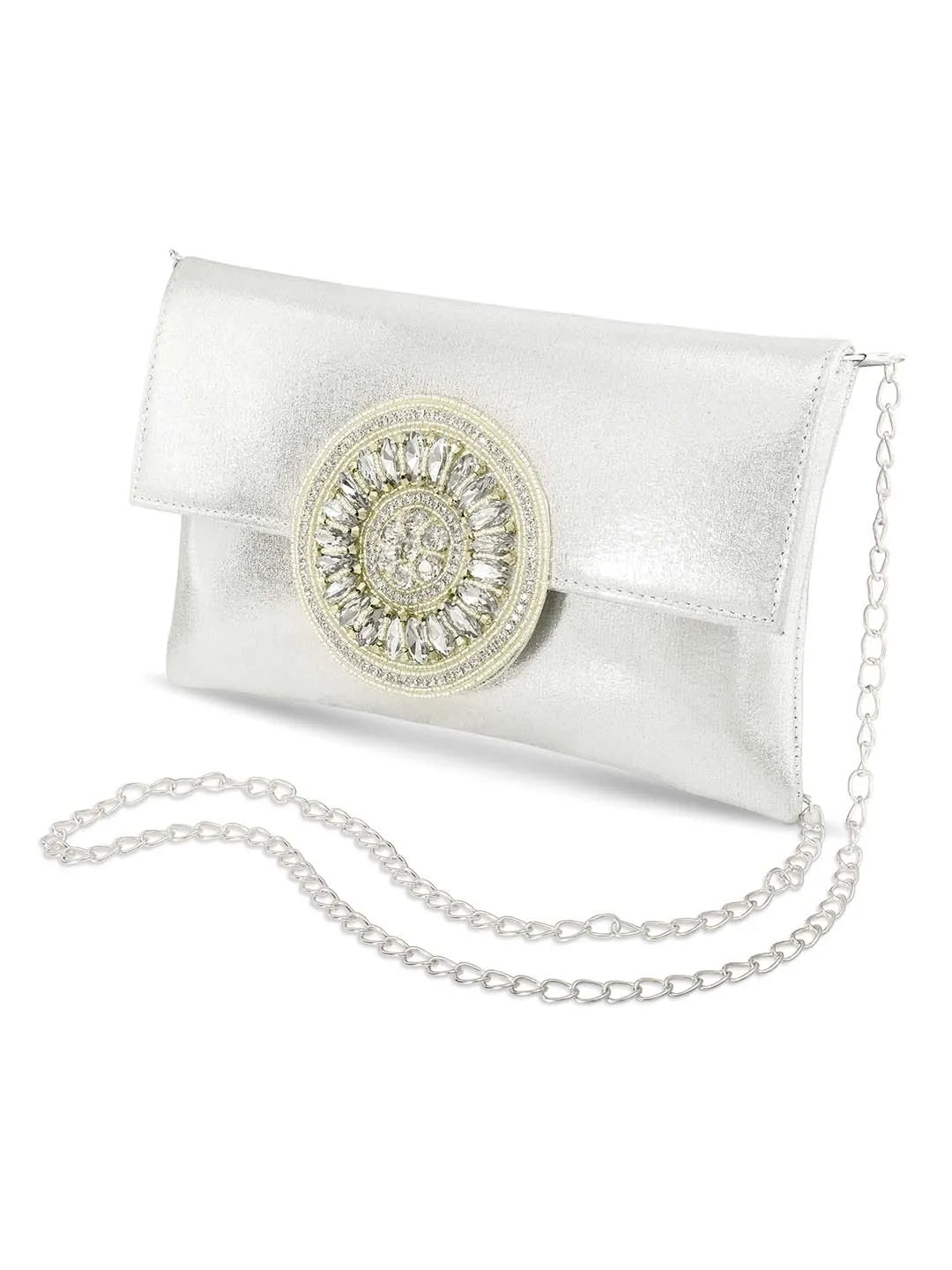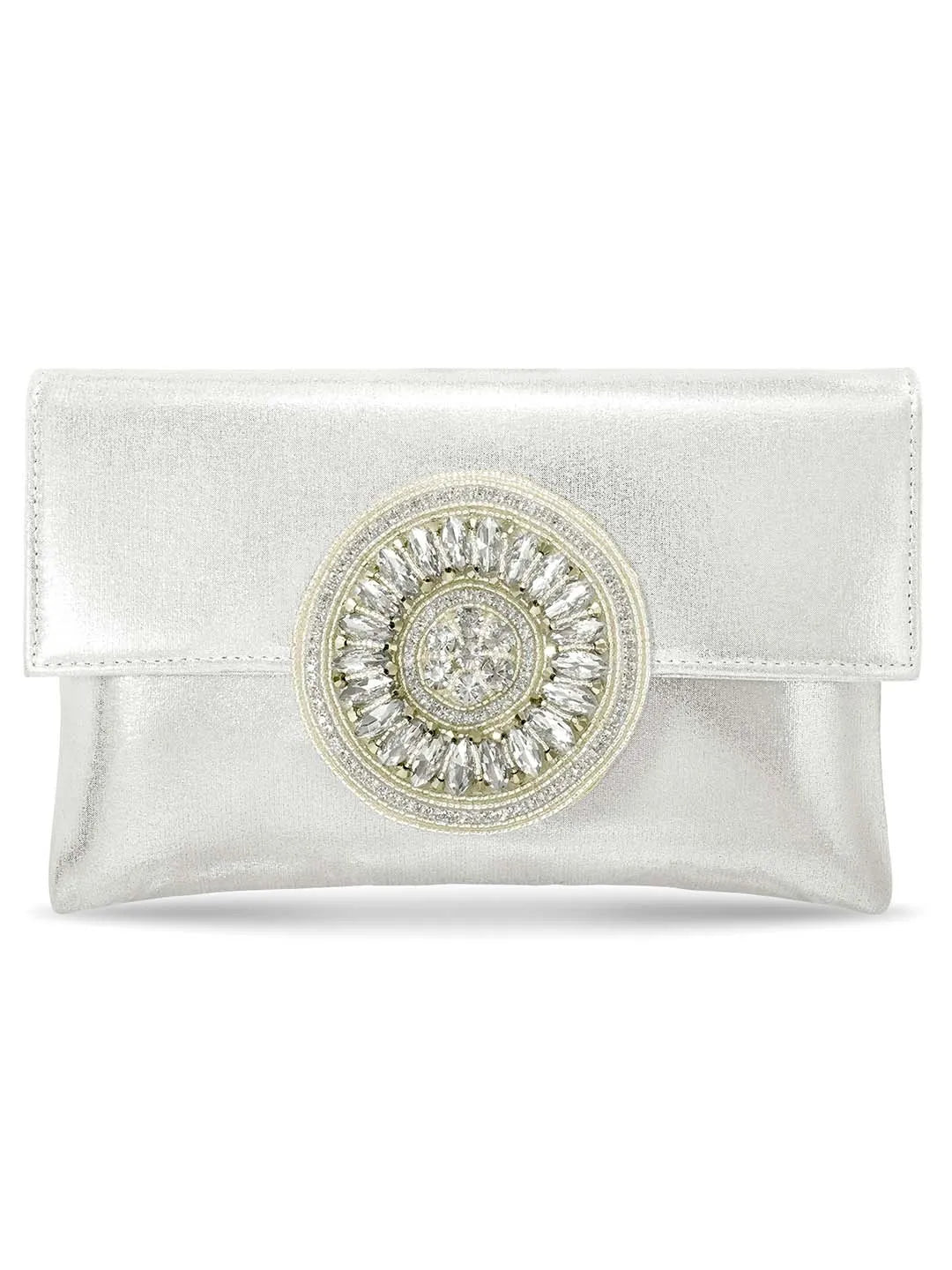 Product Name: Roundabout Design-Crafted Clutch - Silver