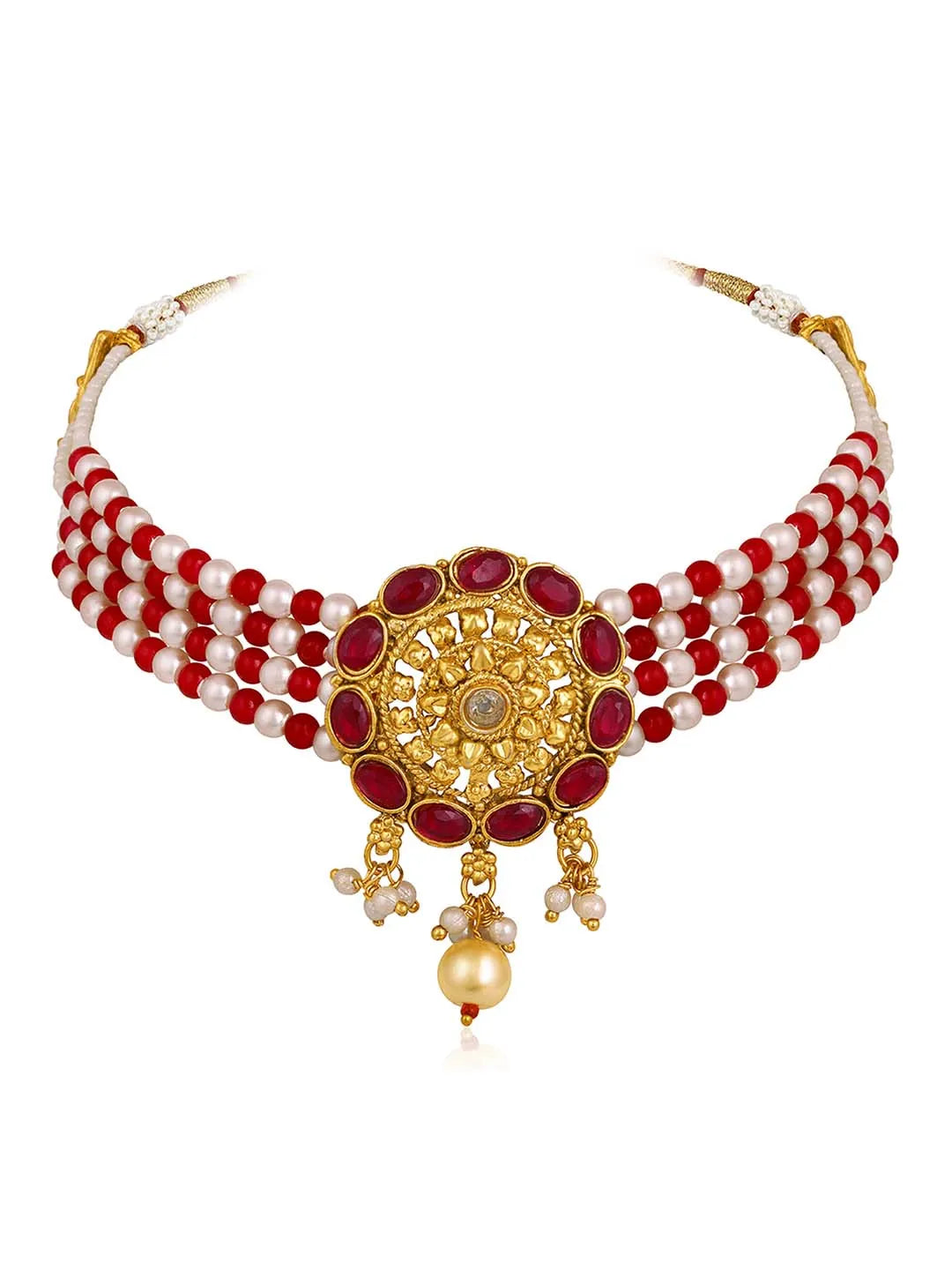 Product Name: Royal Bloom Stunning Necklace Set - Rani Pink White