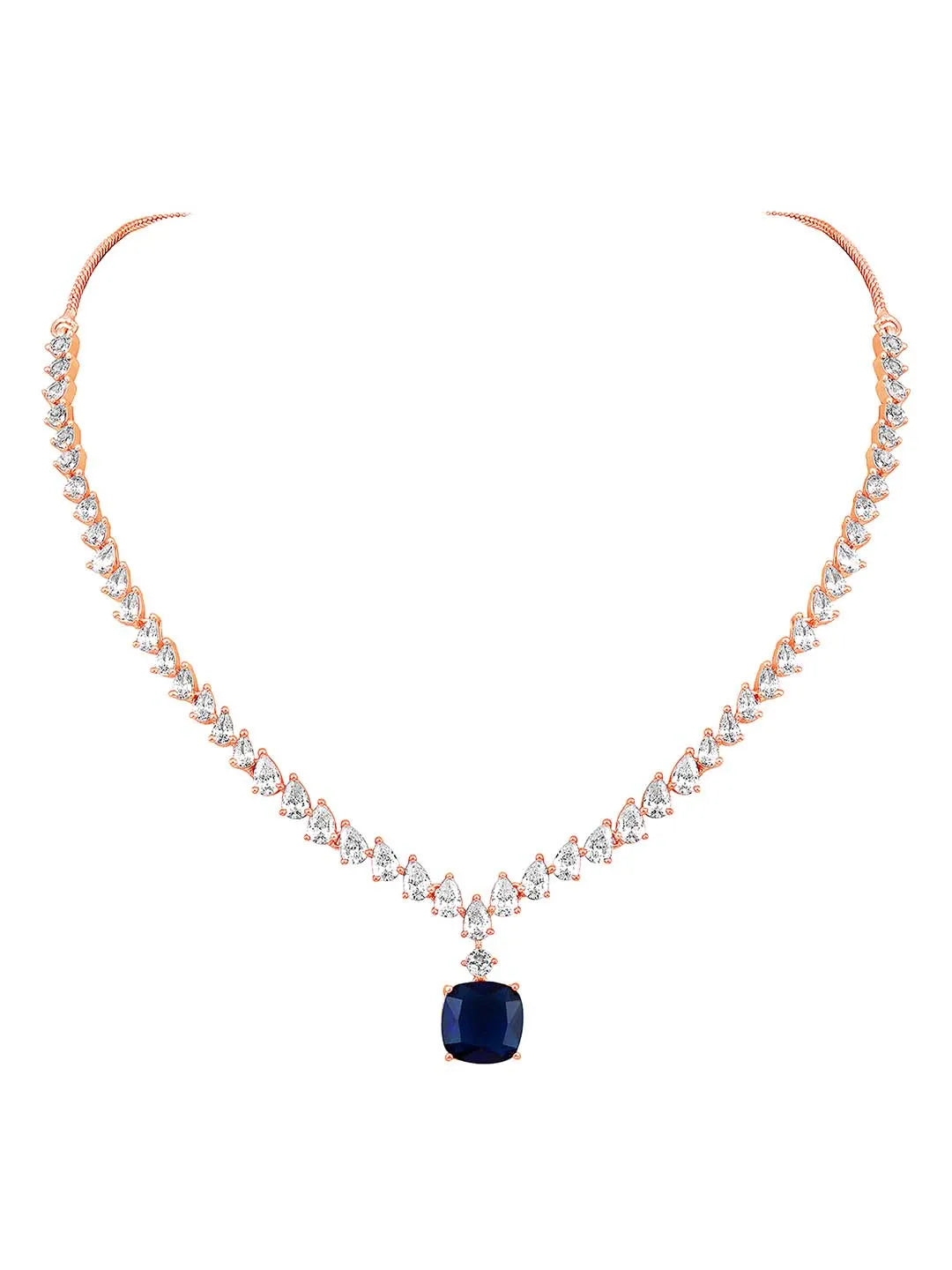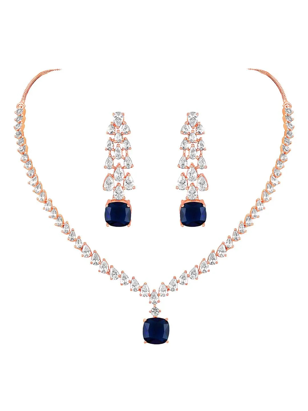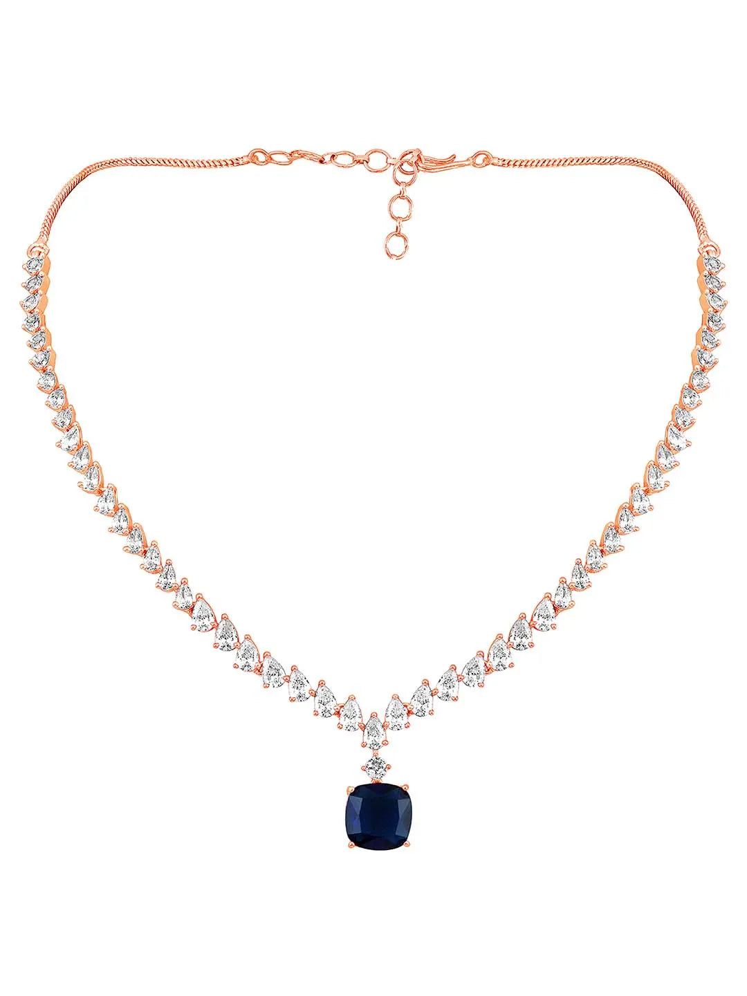 Product Name: Royal Crystal Stone & CZ Necklace - Rose Gold & Blue