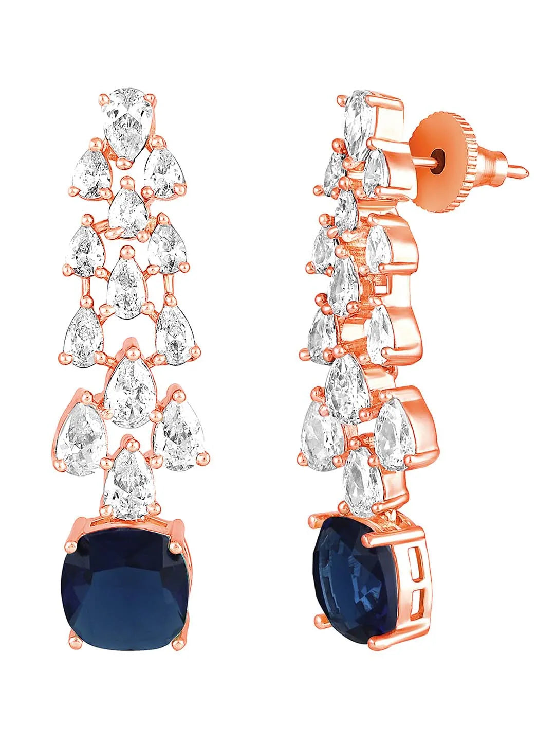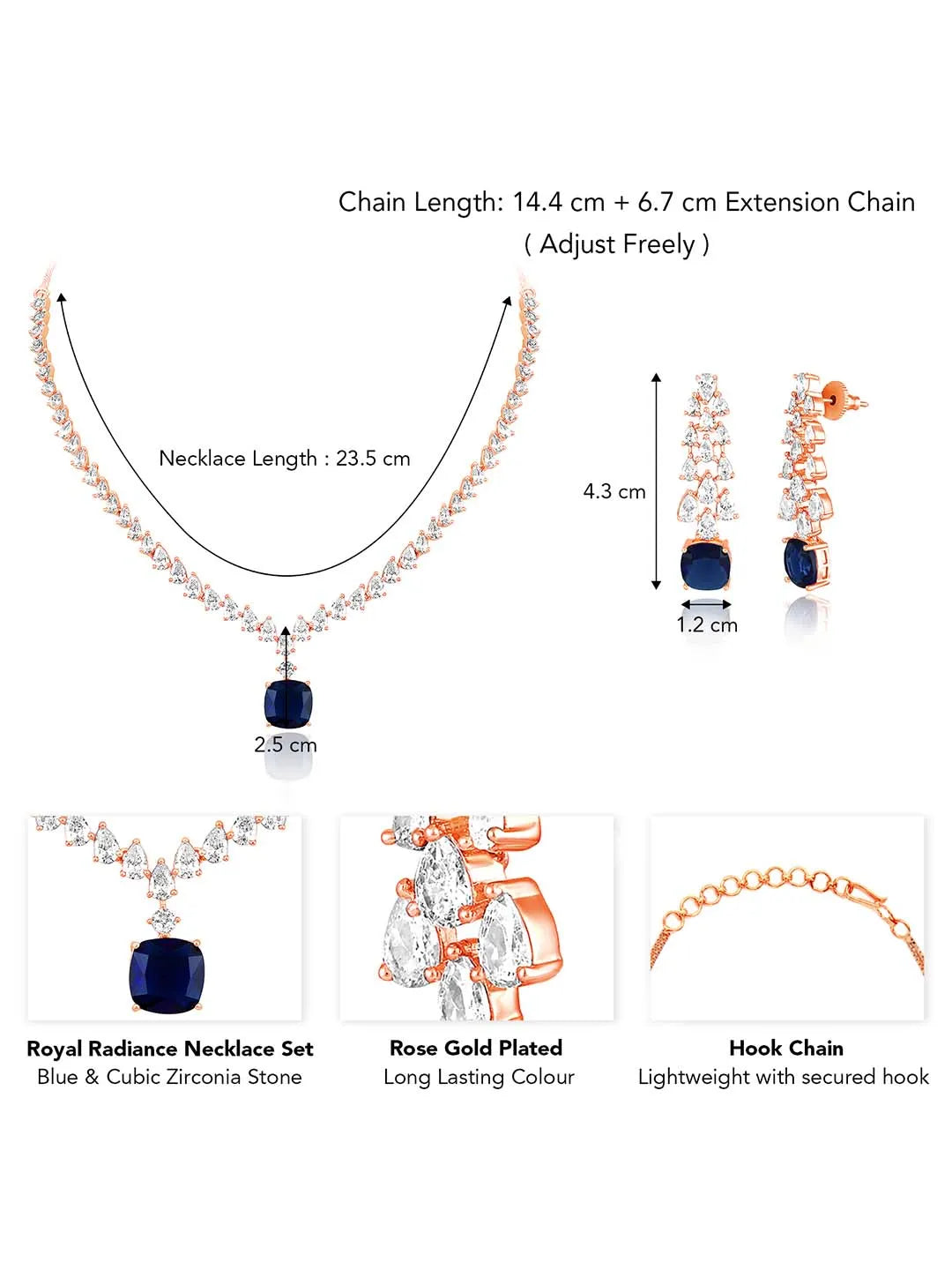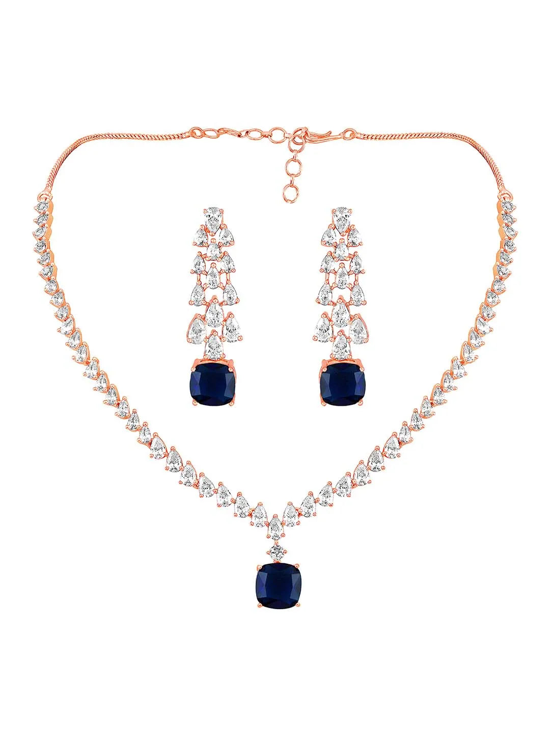 Product Name: Royal Crystal Stone & CZ Necklace - Rose Gold & Blue