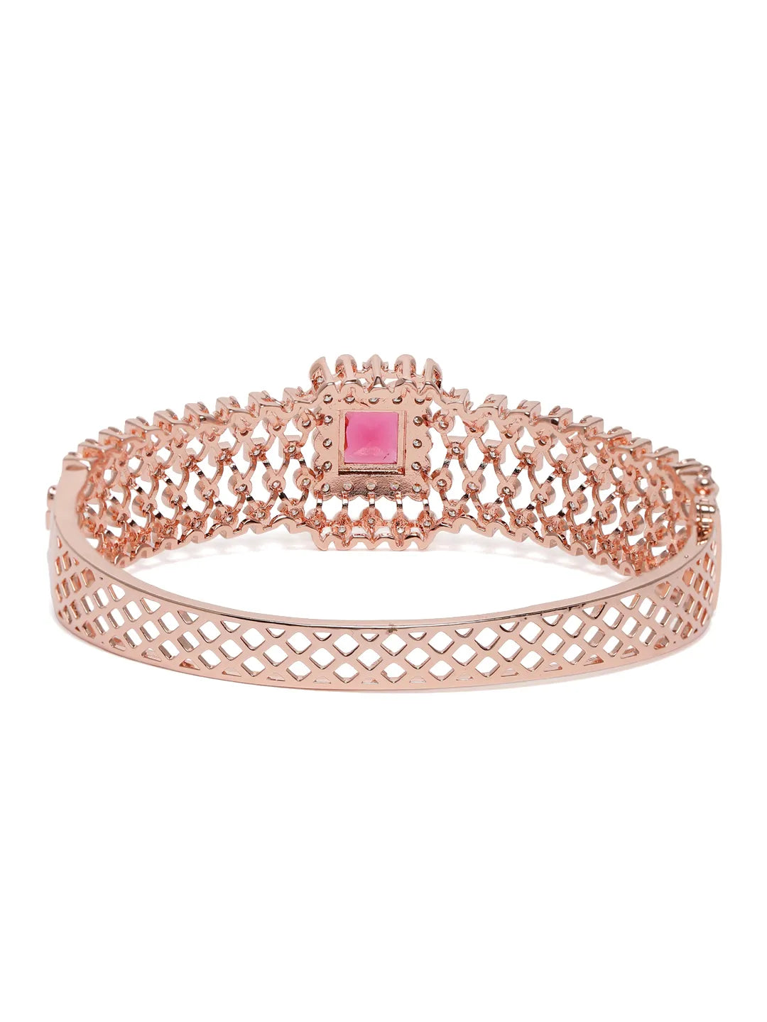 Product Name: Royal CZ Lined Statement Bracelet - Rose Gold - Red