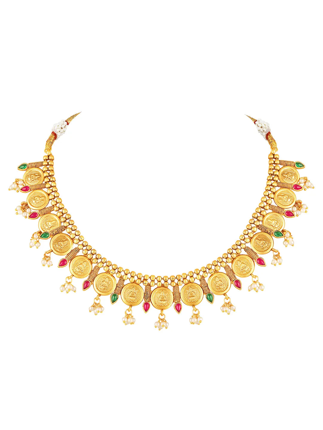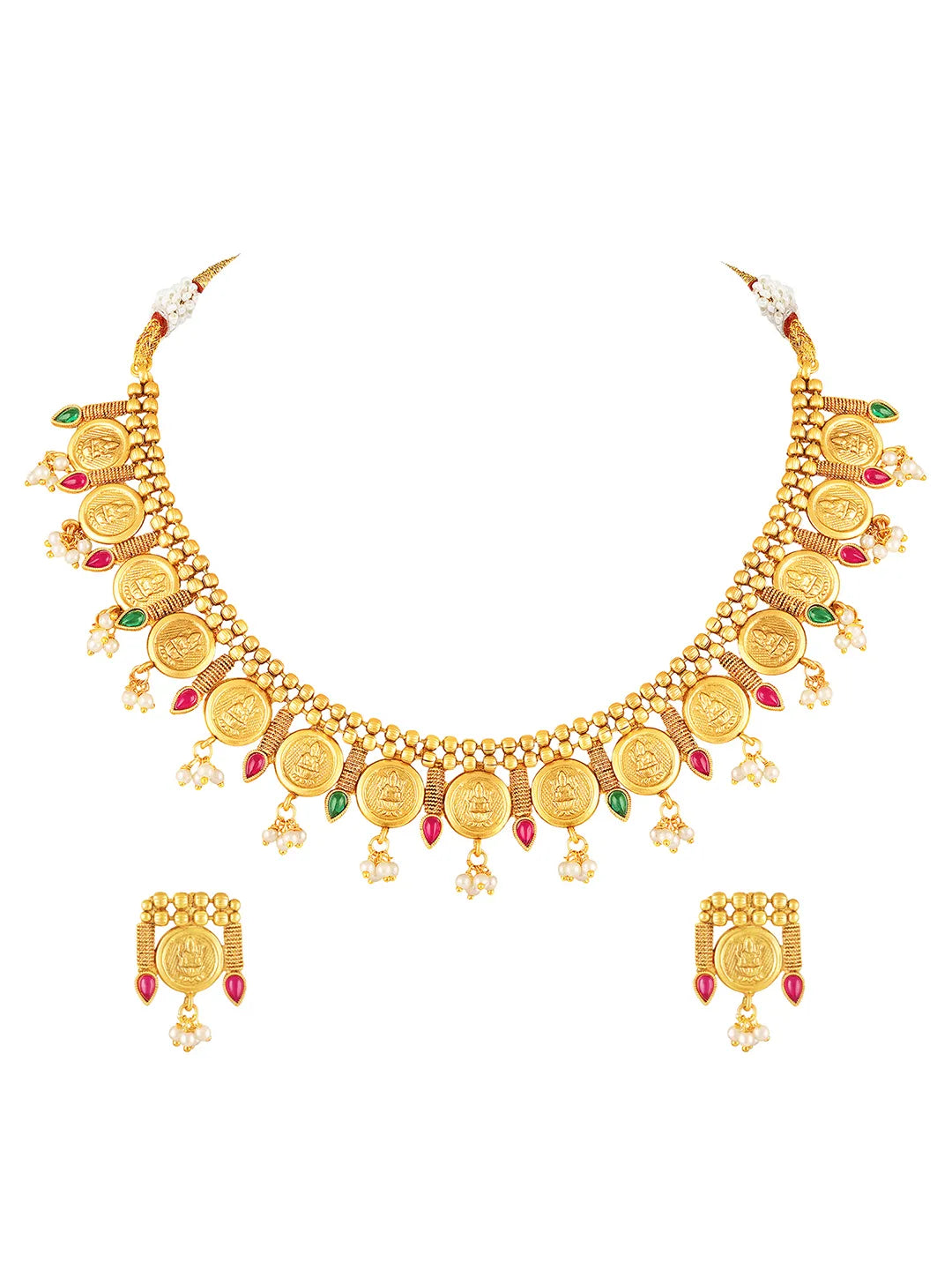 Product Name: Royal Emblem Laxmi Coin Necklace Set - Gold