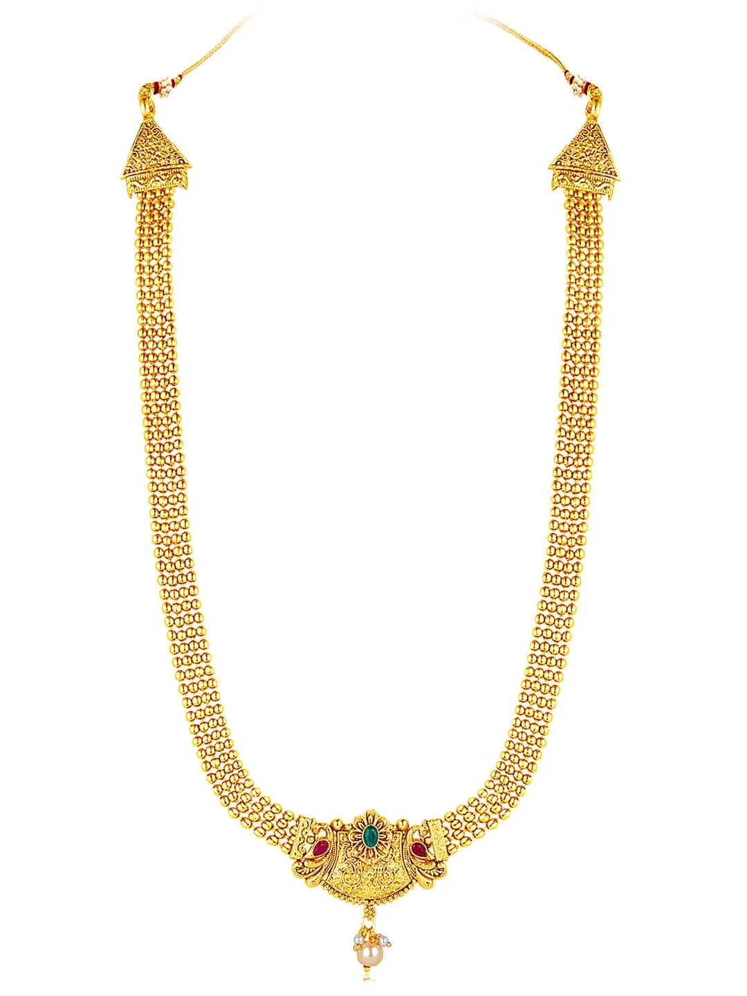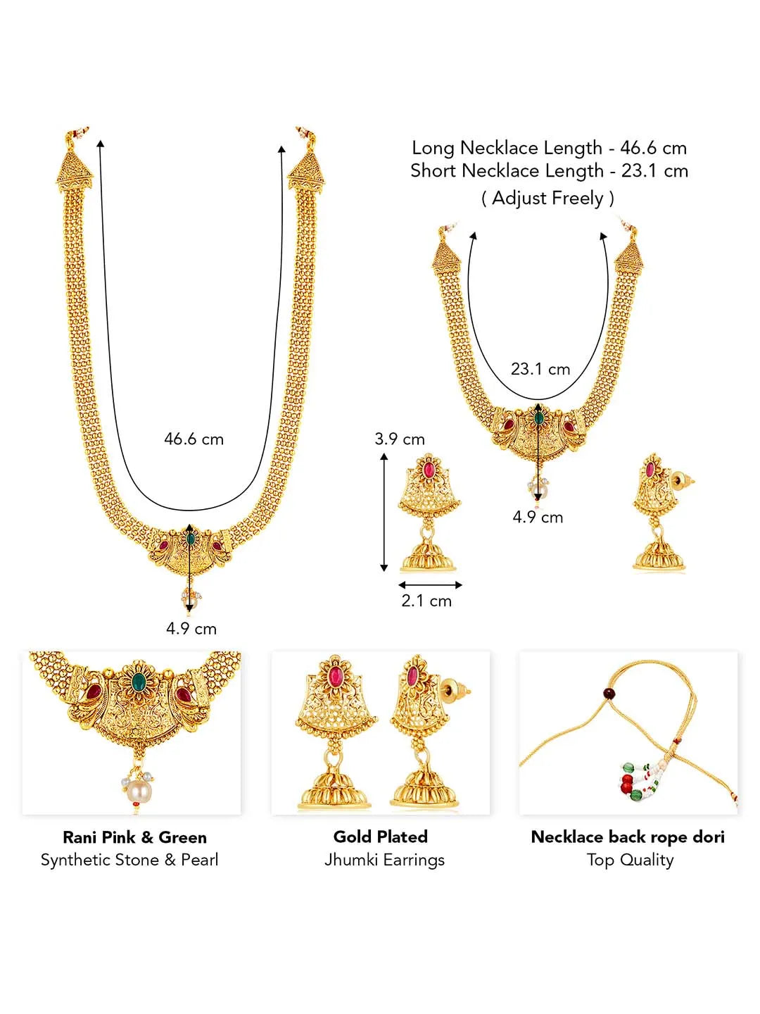 Dimensions: Long Necklace Length: 48.3 cm Width: 5.4 cm; Short Necklace Length: 23.2 cm Width: 5.4 cm; Earrings Length: 3.3 cm Width: 1.9 cm
