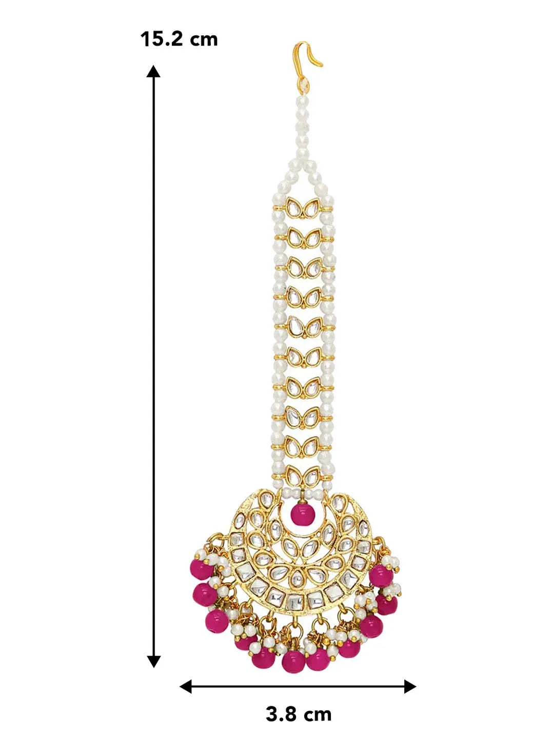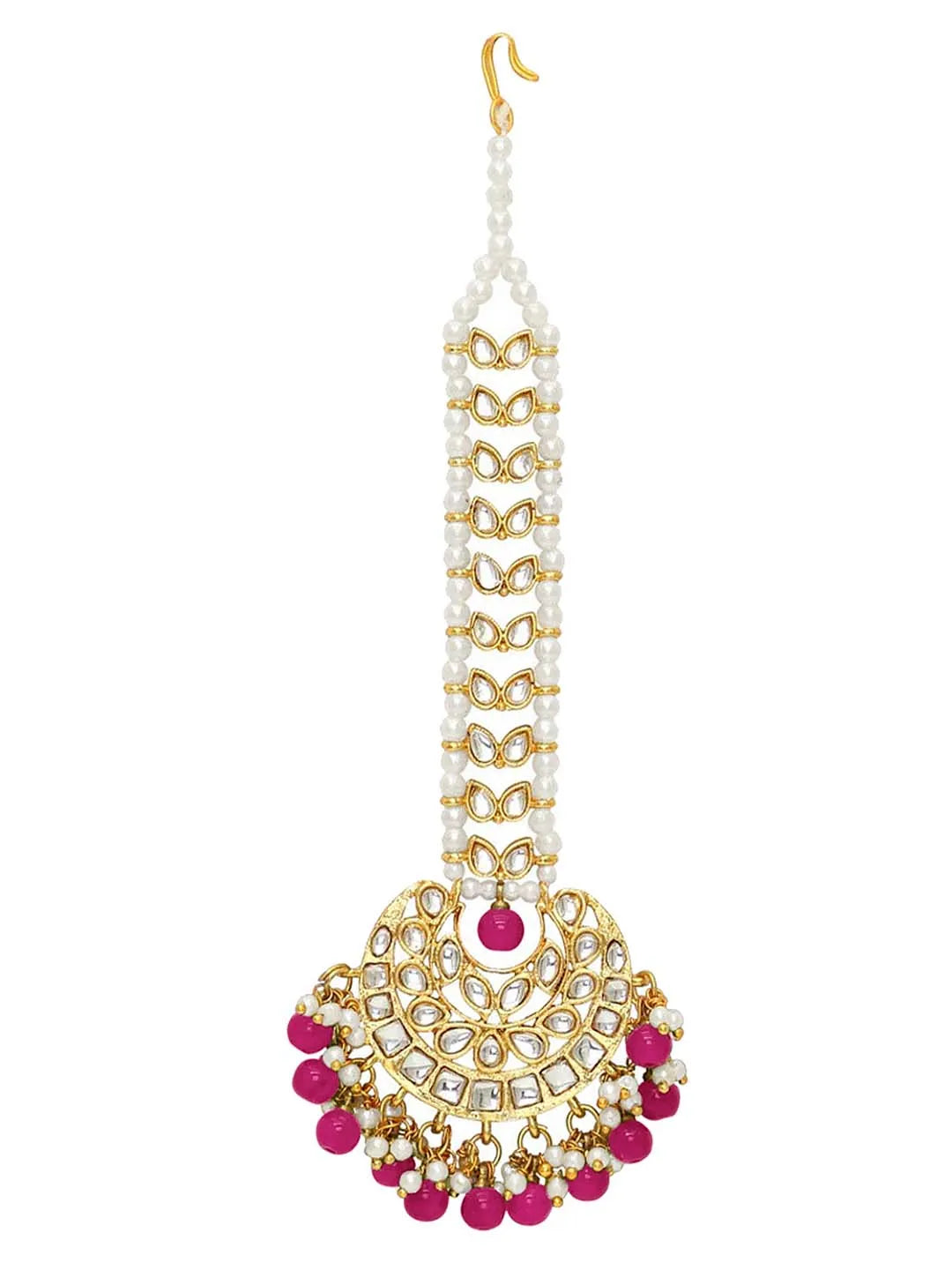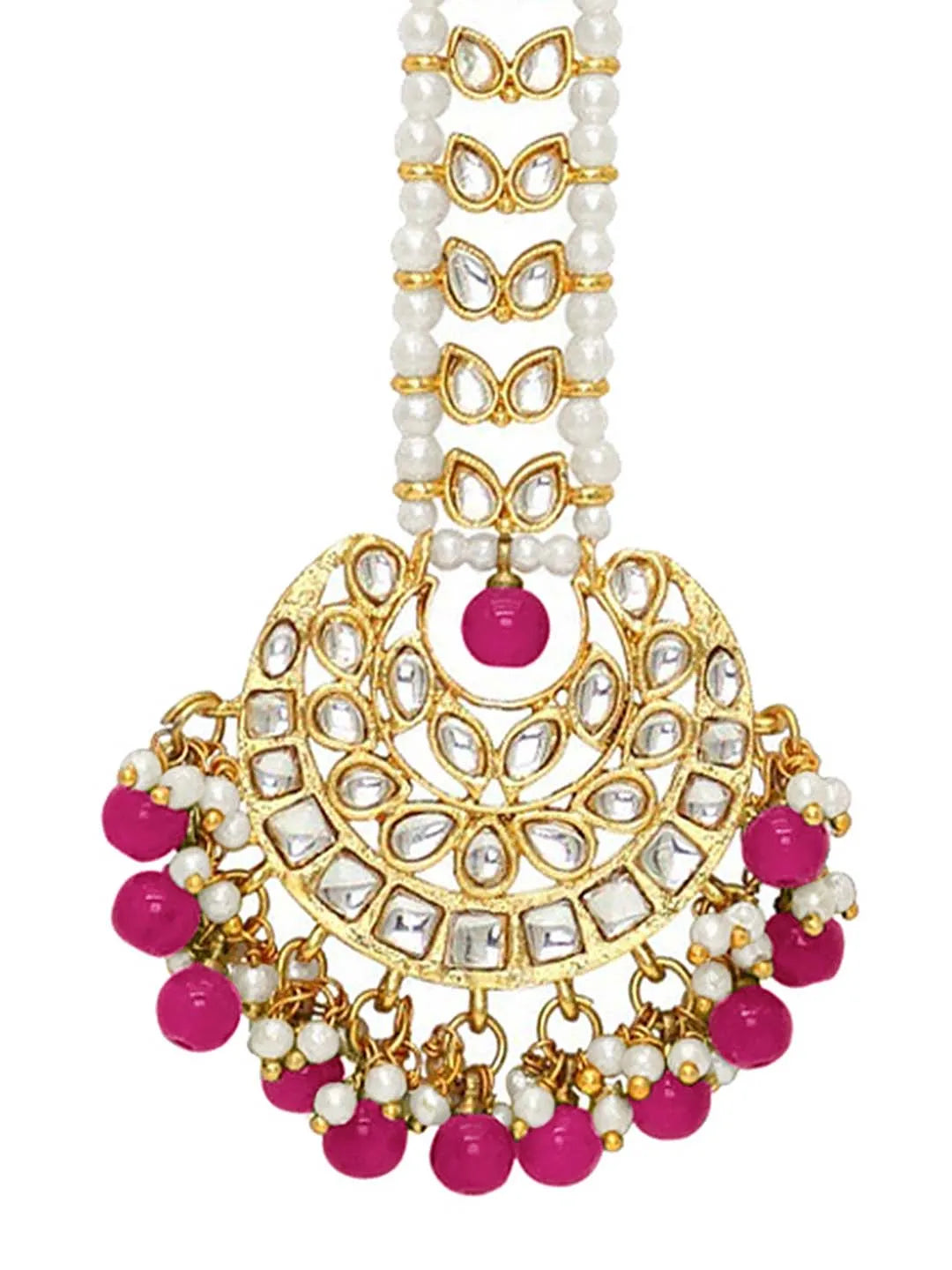 Product Name: Royal Kundan Stud Maang Tikka Sparkle - Rani Pink