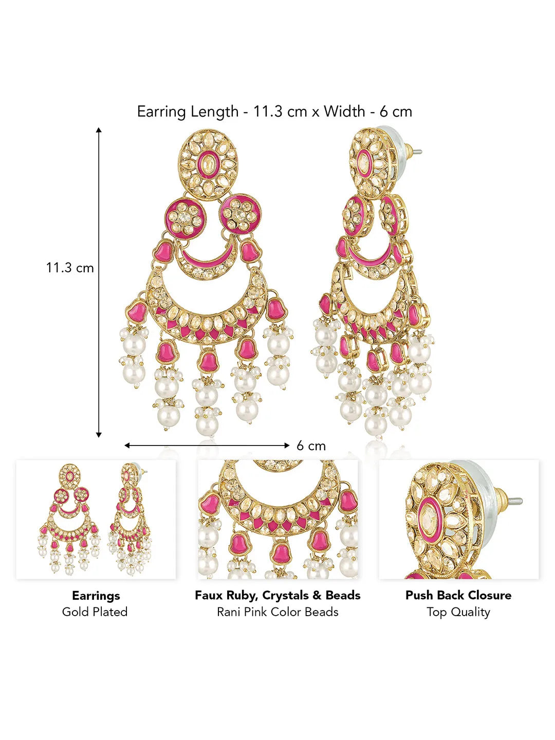 Product Name: Royal Meenakari Pearl Drangler Earrings - Rani Pink - Champagne