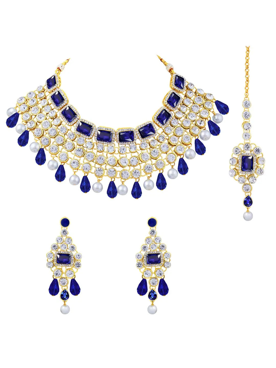 Product Name: Royal Radiance Crystal Choker Set - Blue