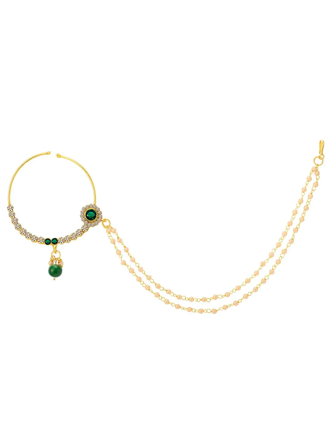 In the Box: 1 Long Necklace 1 Short Necklace 1 Pair of Earrings 1 Nose Pin Ring 1 Pair of Haath Panja 1 Matha Patti 1 Set of Bangles