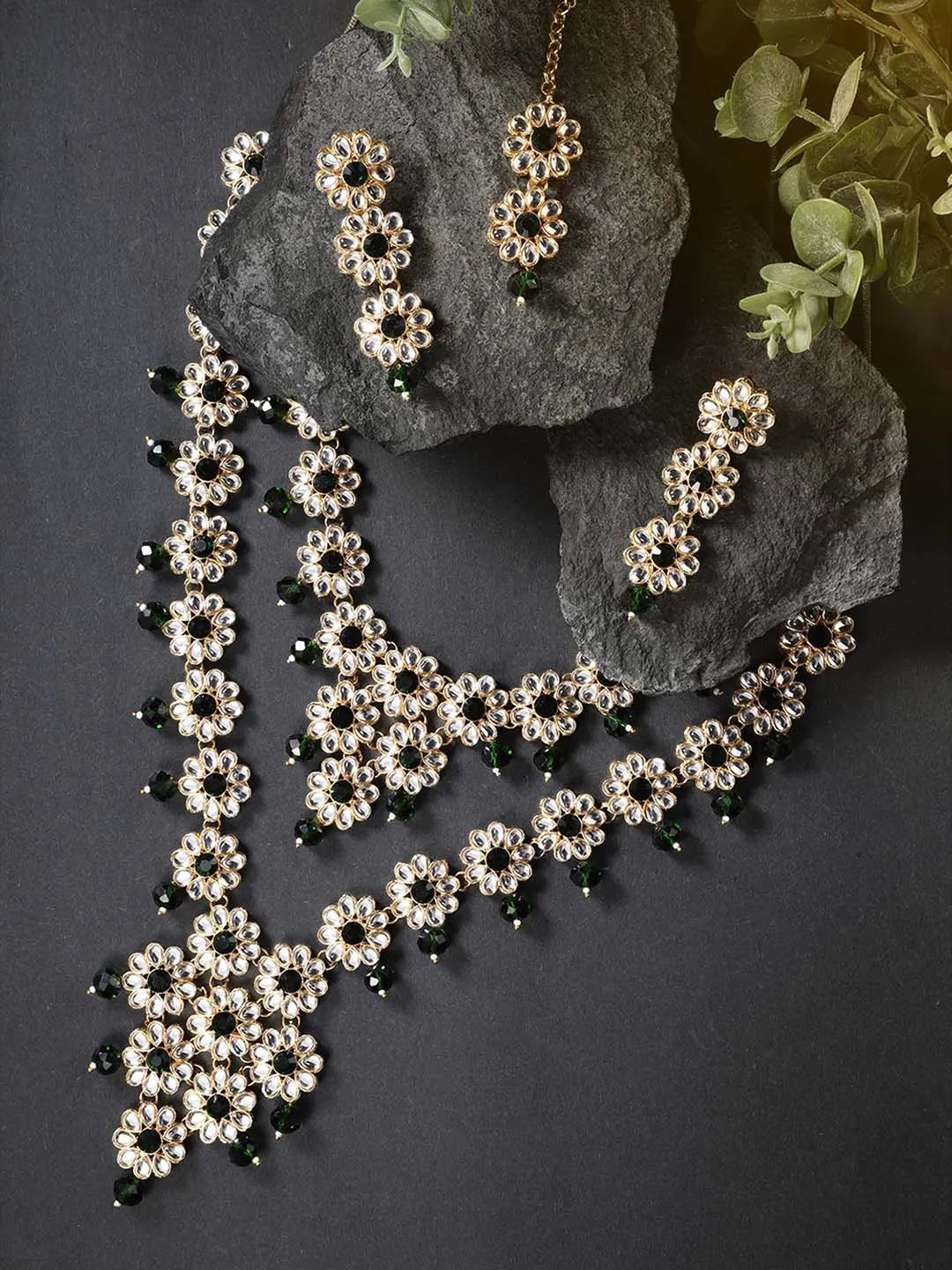 In the Box: 1 Necklace, 1 Pair of Earrings, 1 Maangtikka