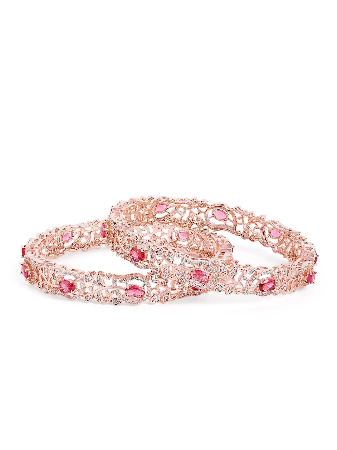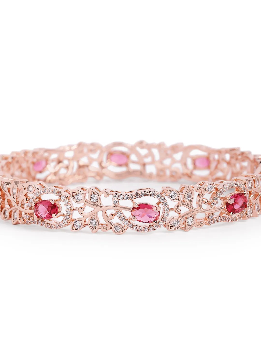 Product Name: Sapphire Leaf CZ Bangle Set for Women - Rose Gold & Red
