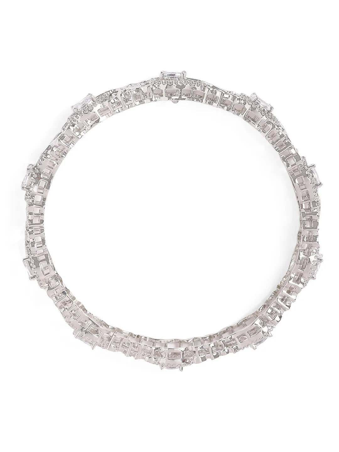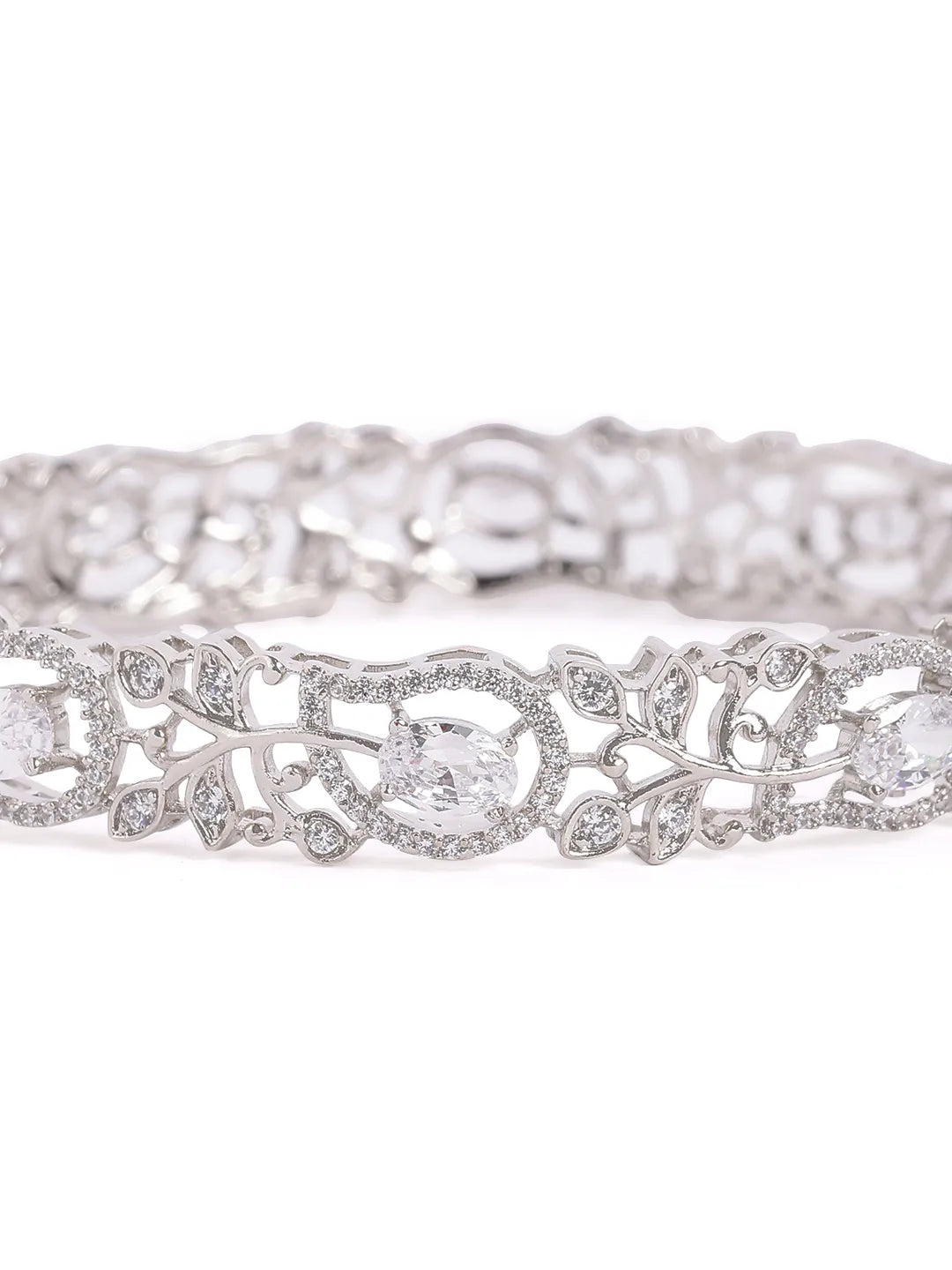 Product Name: Sapphire Leaf CZ Bangle Set for Women - Silver