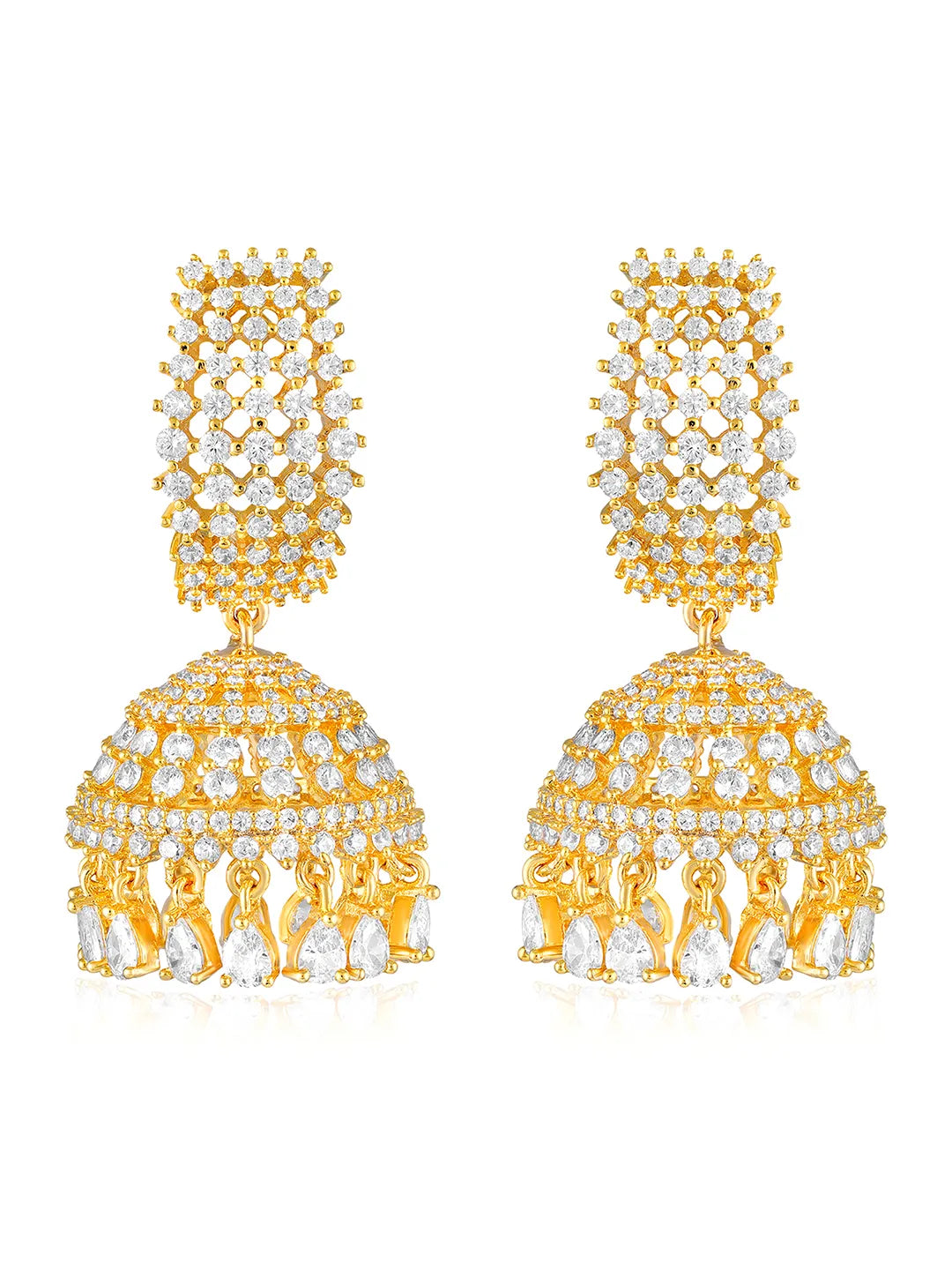 Product Name: Sculpted Sparkle CZ Jhumki Earrings - Gold White
