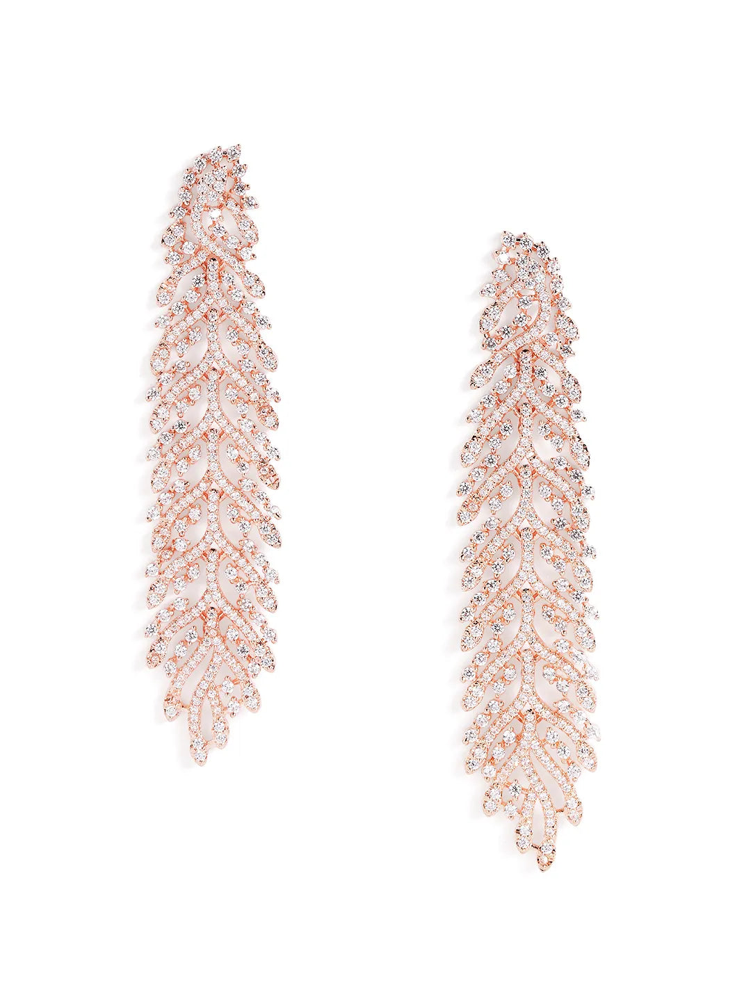 Product Name: Shimmering Leaf Trail CZ Dangle Earrings - Rose Gold