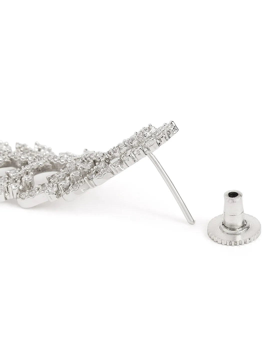 Product Name: Shimmering Leaf Trail CZ Dangle Earrings - Silver