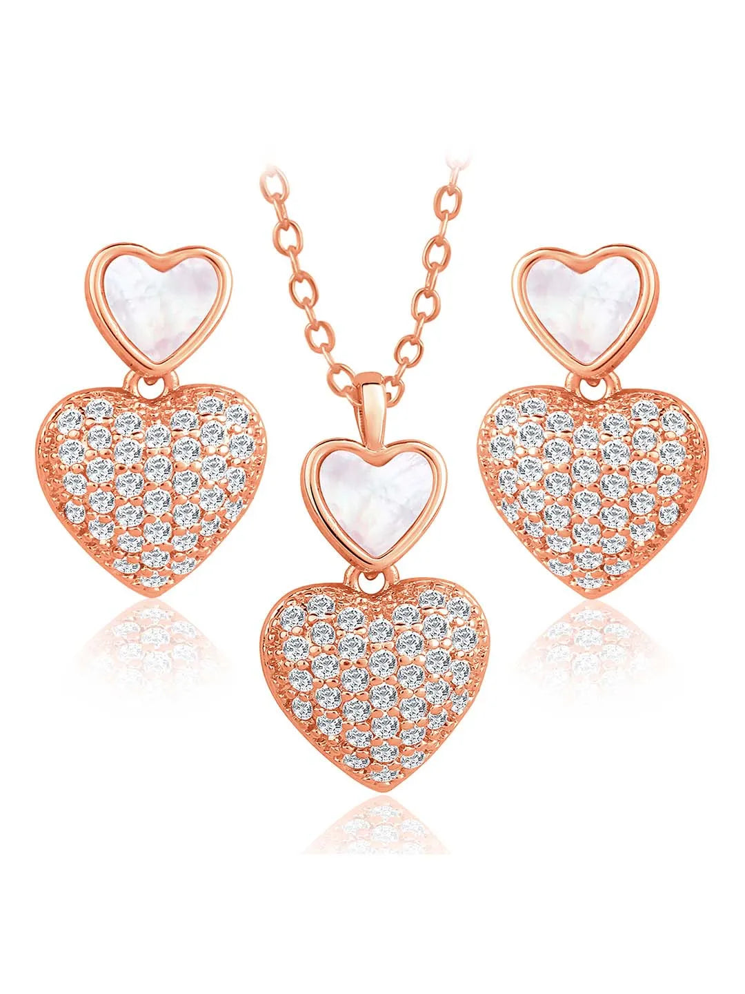 Product Name: Shining Heart Shaped CZ Pendant Set - Rose Gold