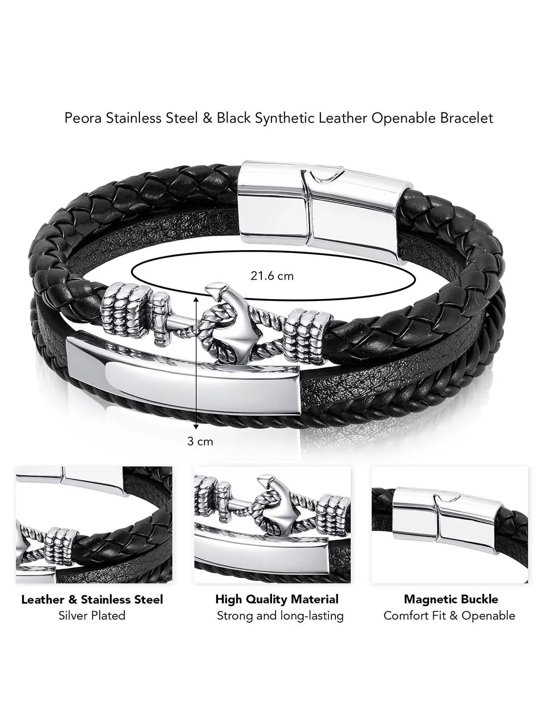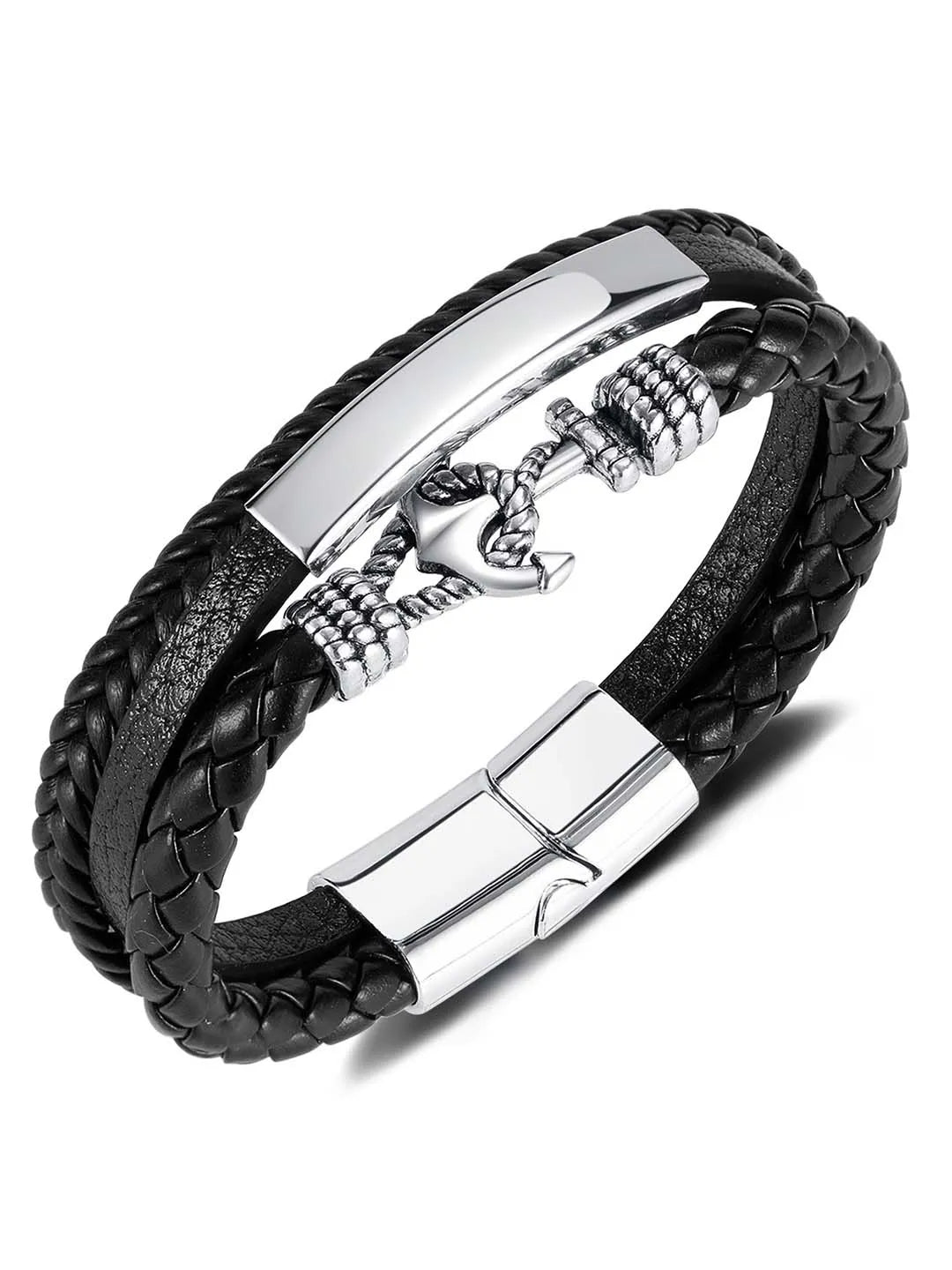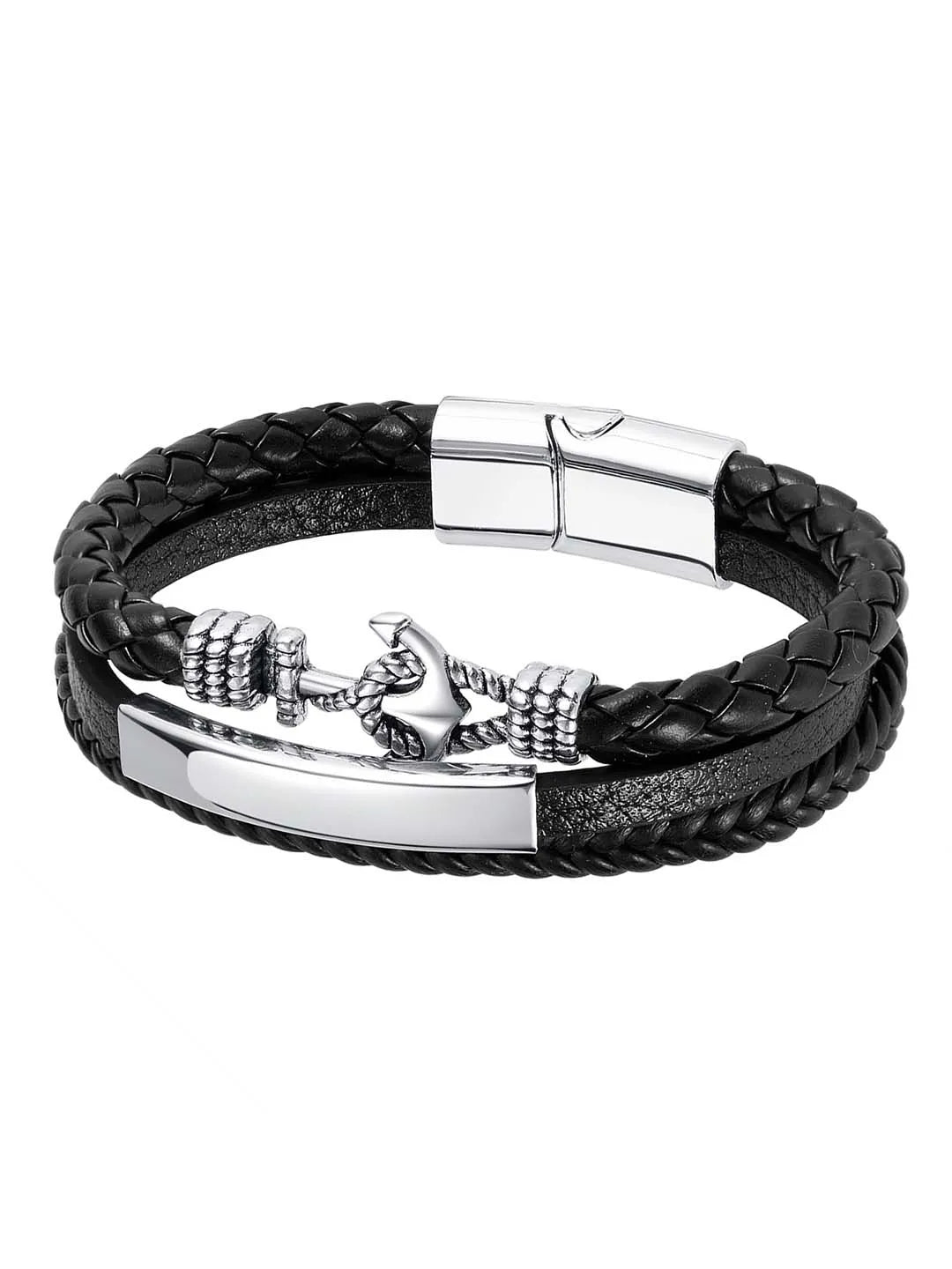 Product Name: Men’s Anchor Accent Openable Leather Bracelet