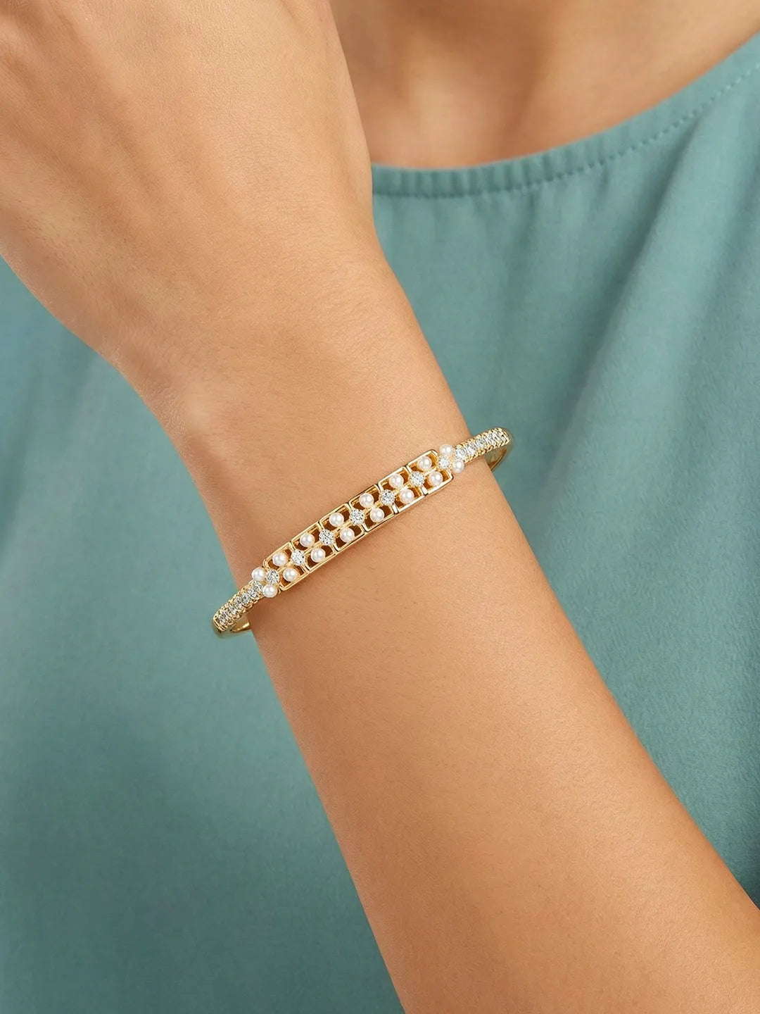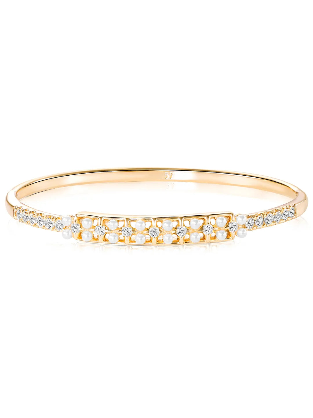 Product Name: Slim CZ & Pearl Strip Gold Bangle Kada