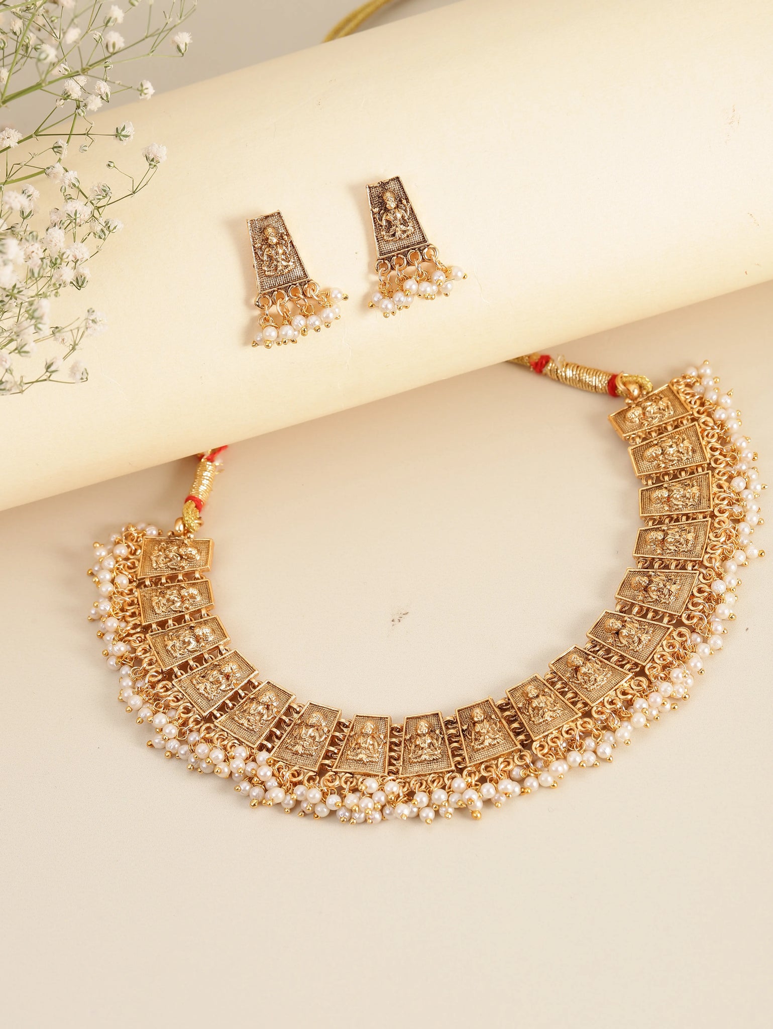 Product Name: South Temple Laxmi Necklace with Pearls - Gold