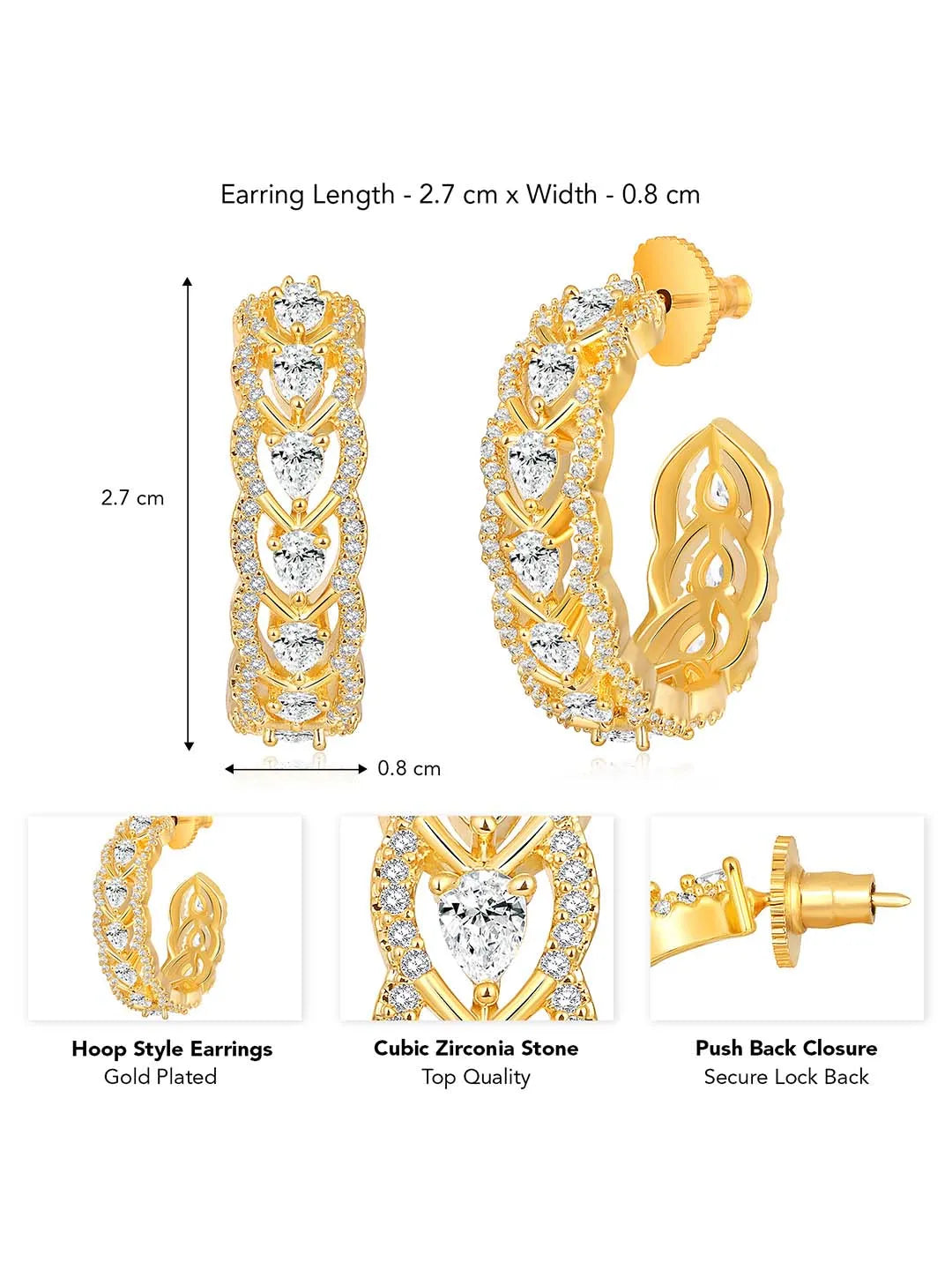 Product Name: Gold CZ Heart Link Half Hoop Earrings