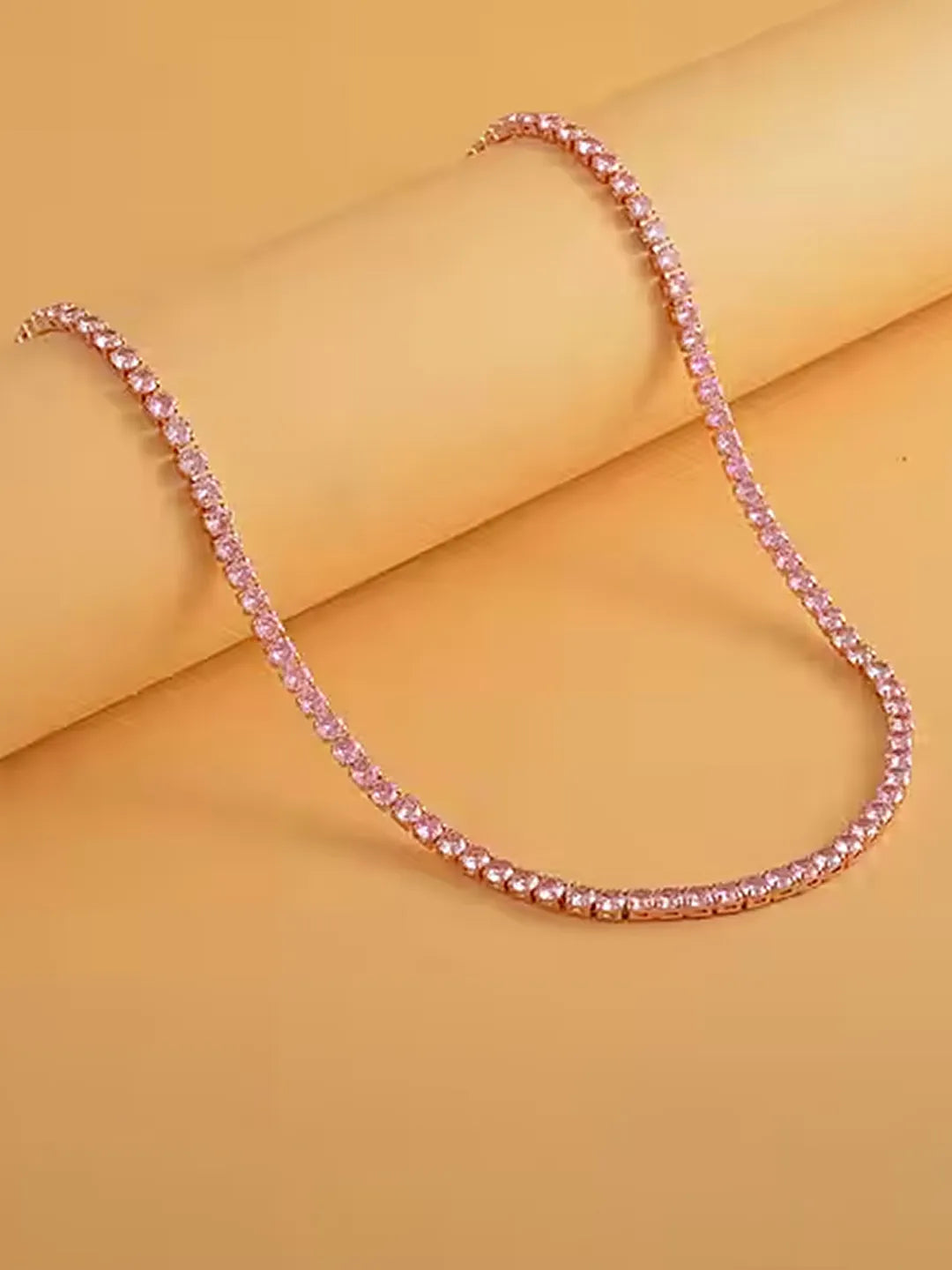 Product Name: Sparkling Crystal Tennis Necklace - Rose Gold Pink