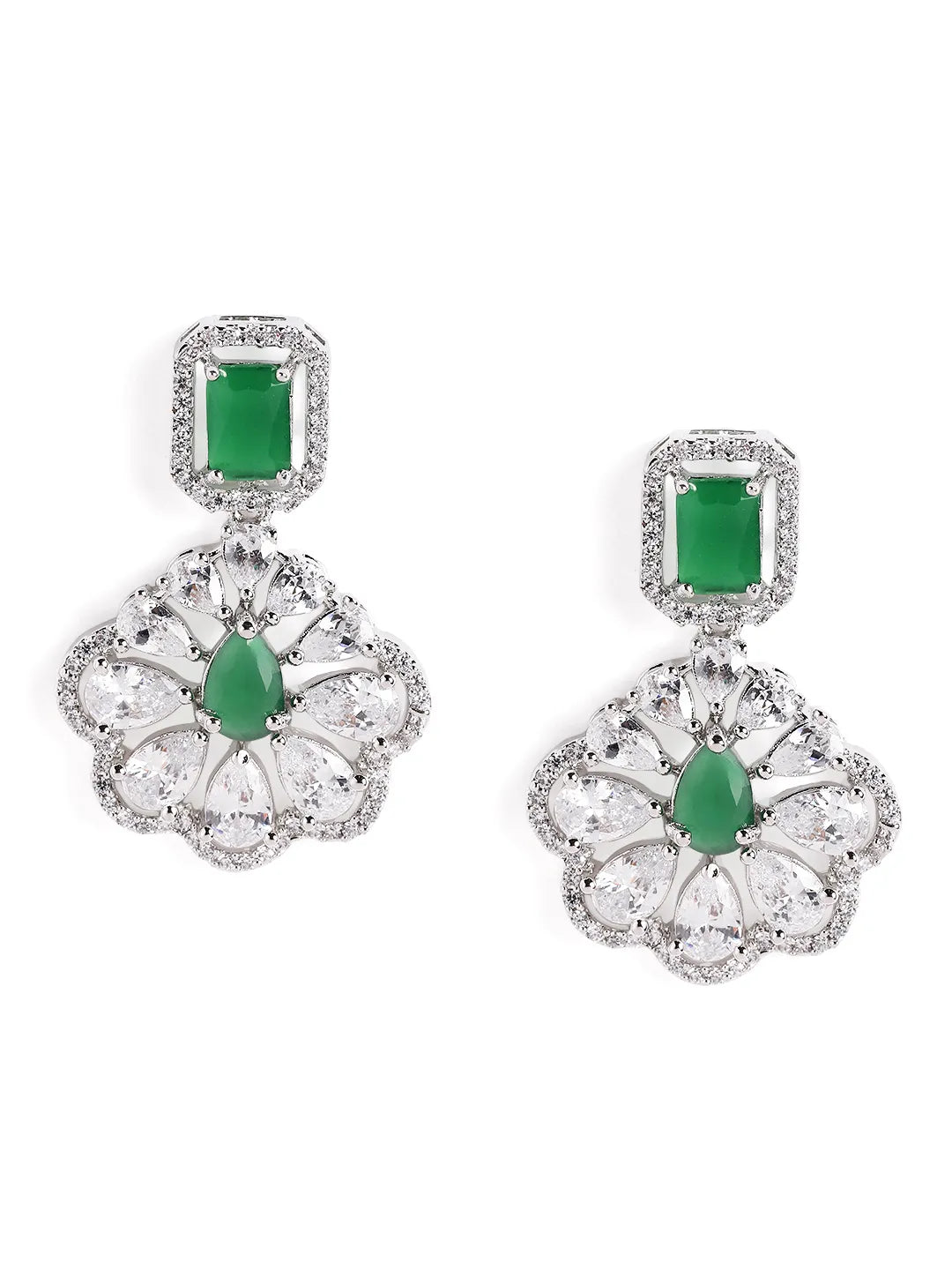 Product Name: Sparkling Faux Ruby Floral Drop Earrings - Green