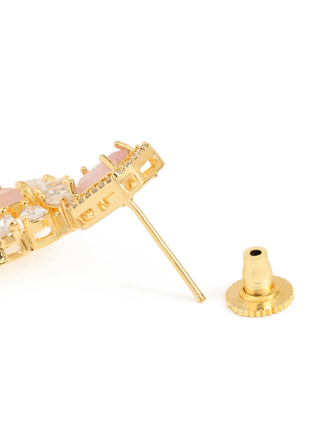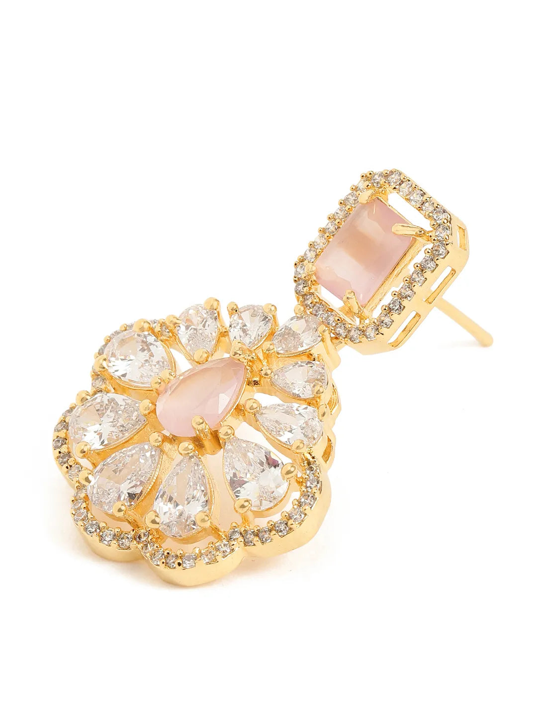 Product Name: Sparkling Faux Ruby Floral Drop Earrings - Pink