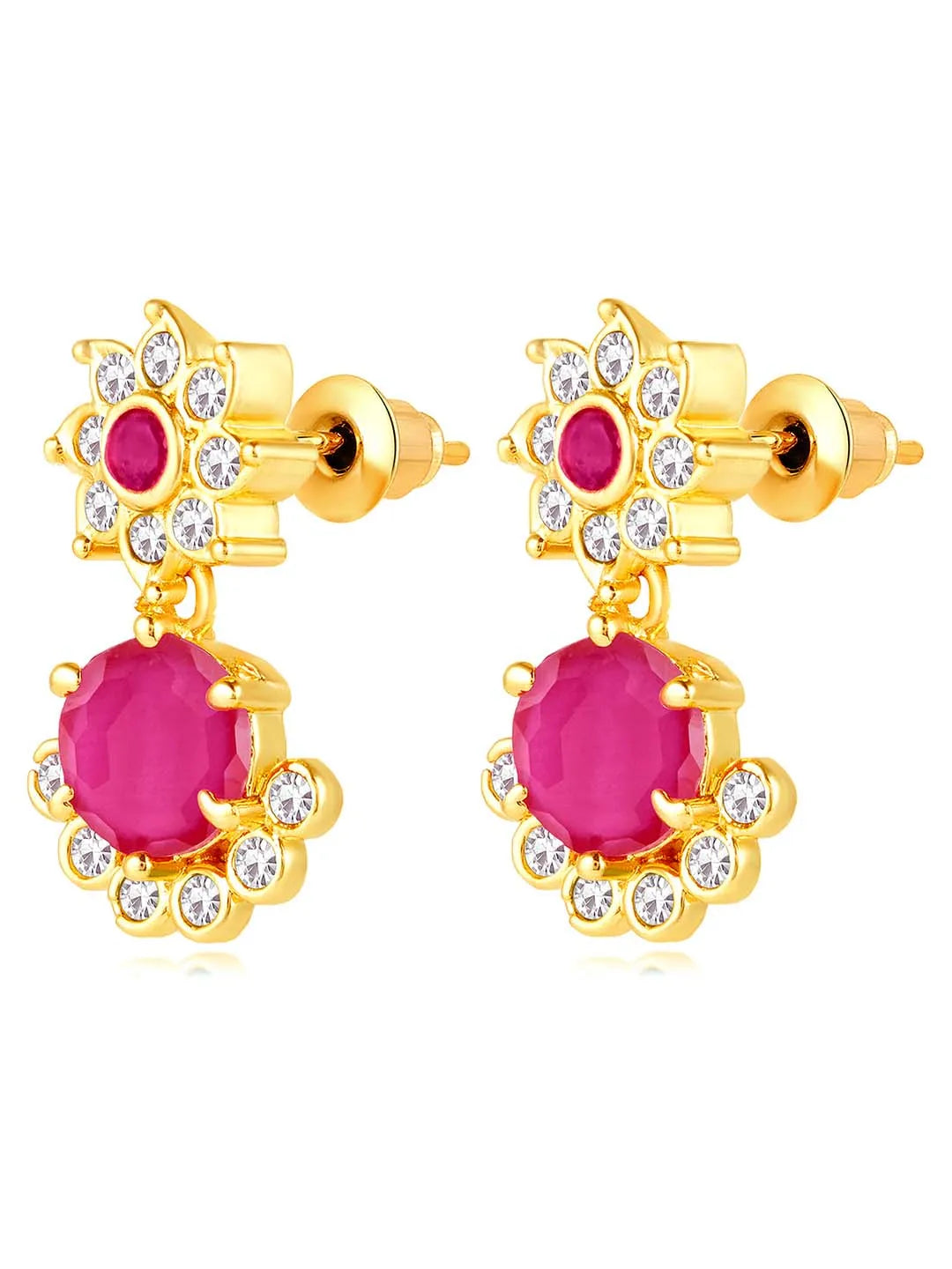 Product Name: Sparkling Radiance CZ Drop Earrings - Rani Pink