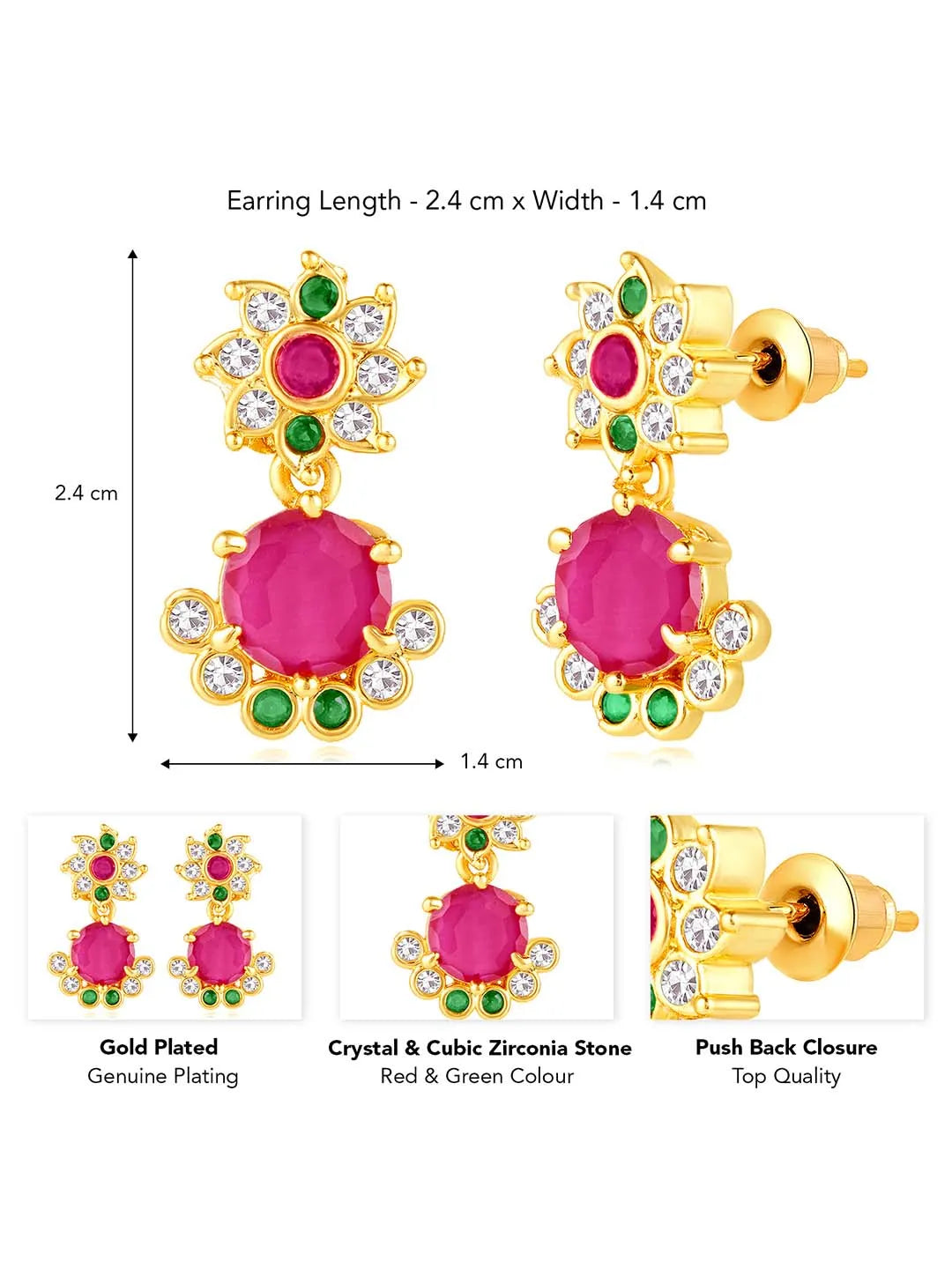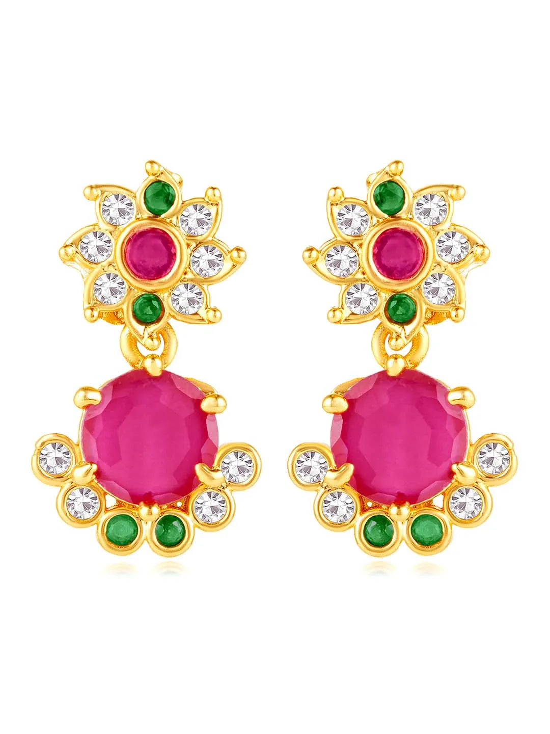 Product Name: Sparkling Radiance CZ Drop Earrings - Rani Pink Green