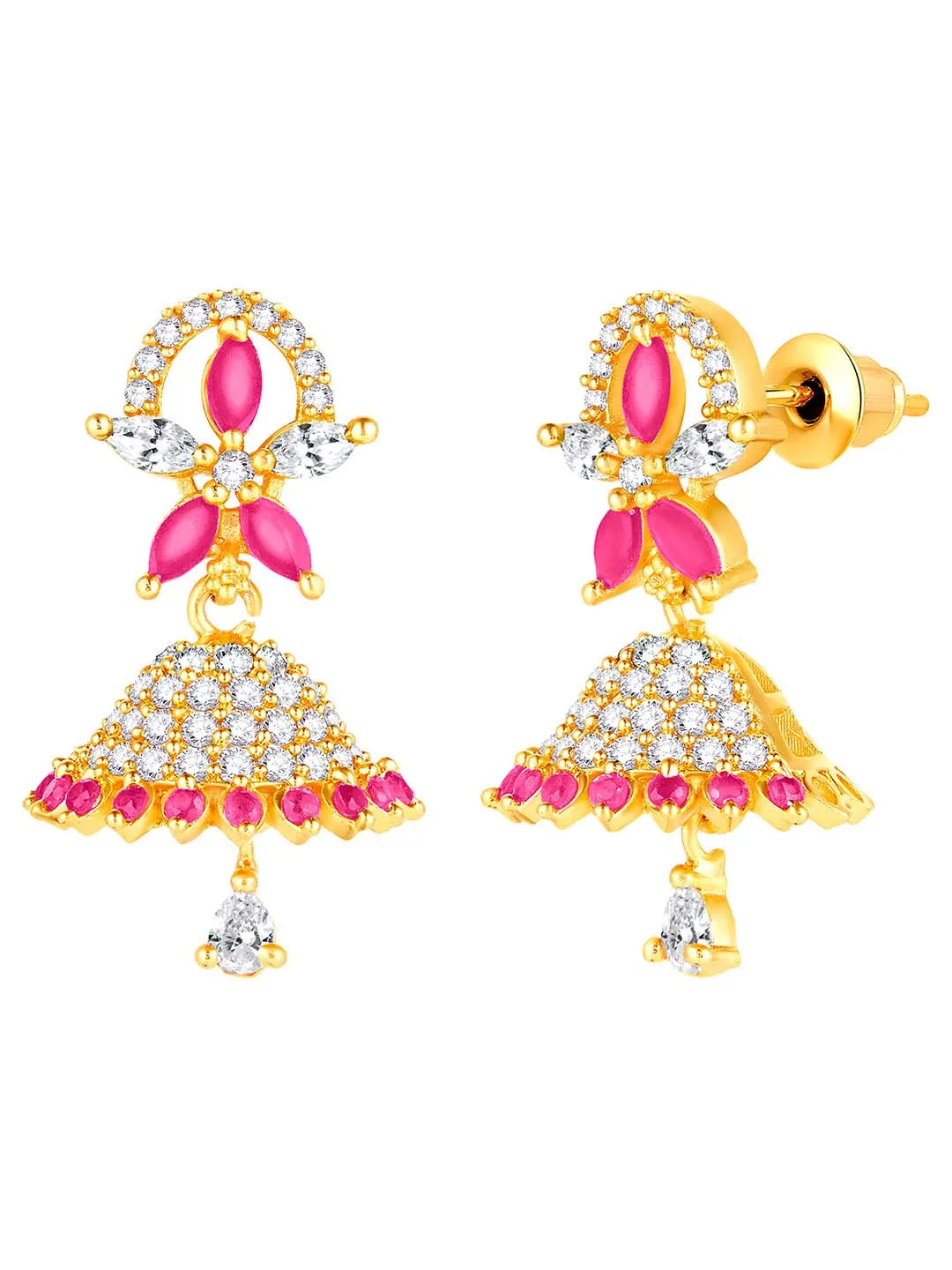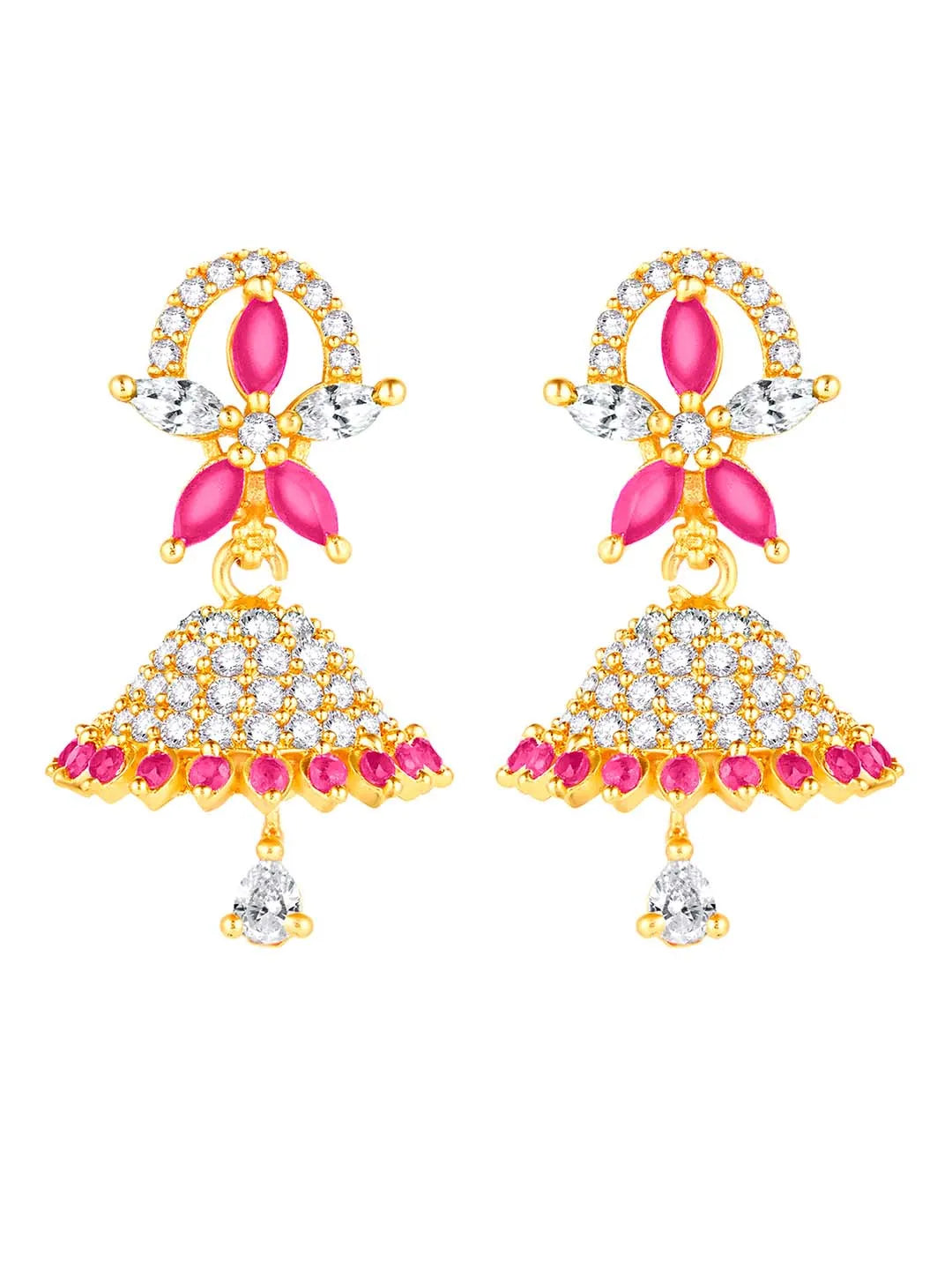Product Name: Sparkling & Stylish Blush CZ Jhumki - Rani Pink