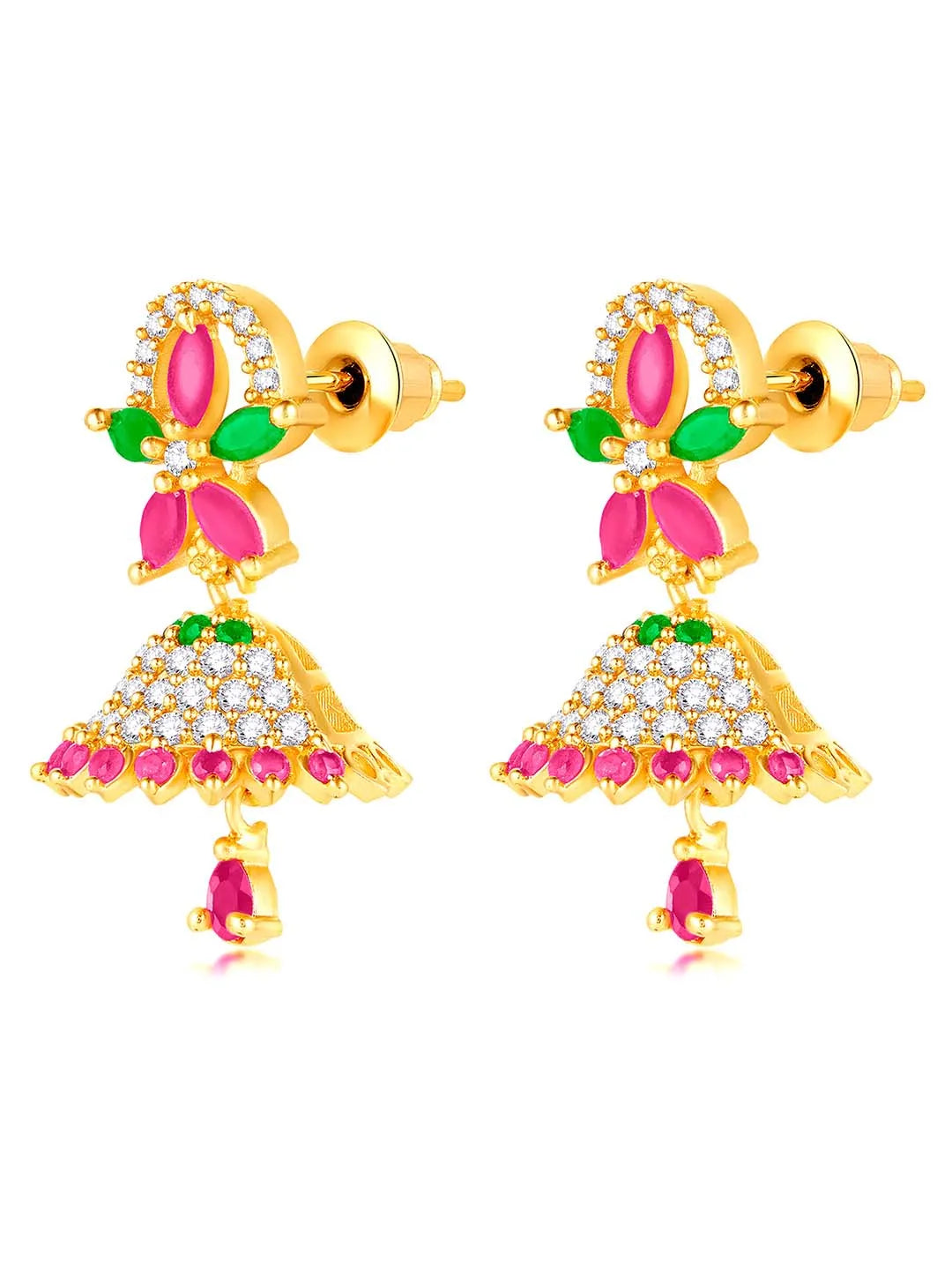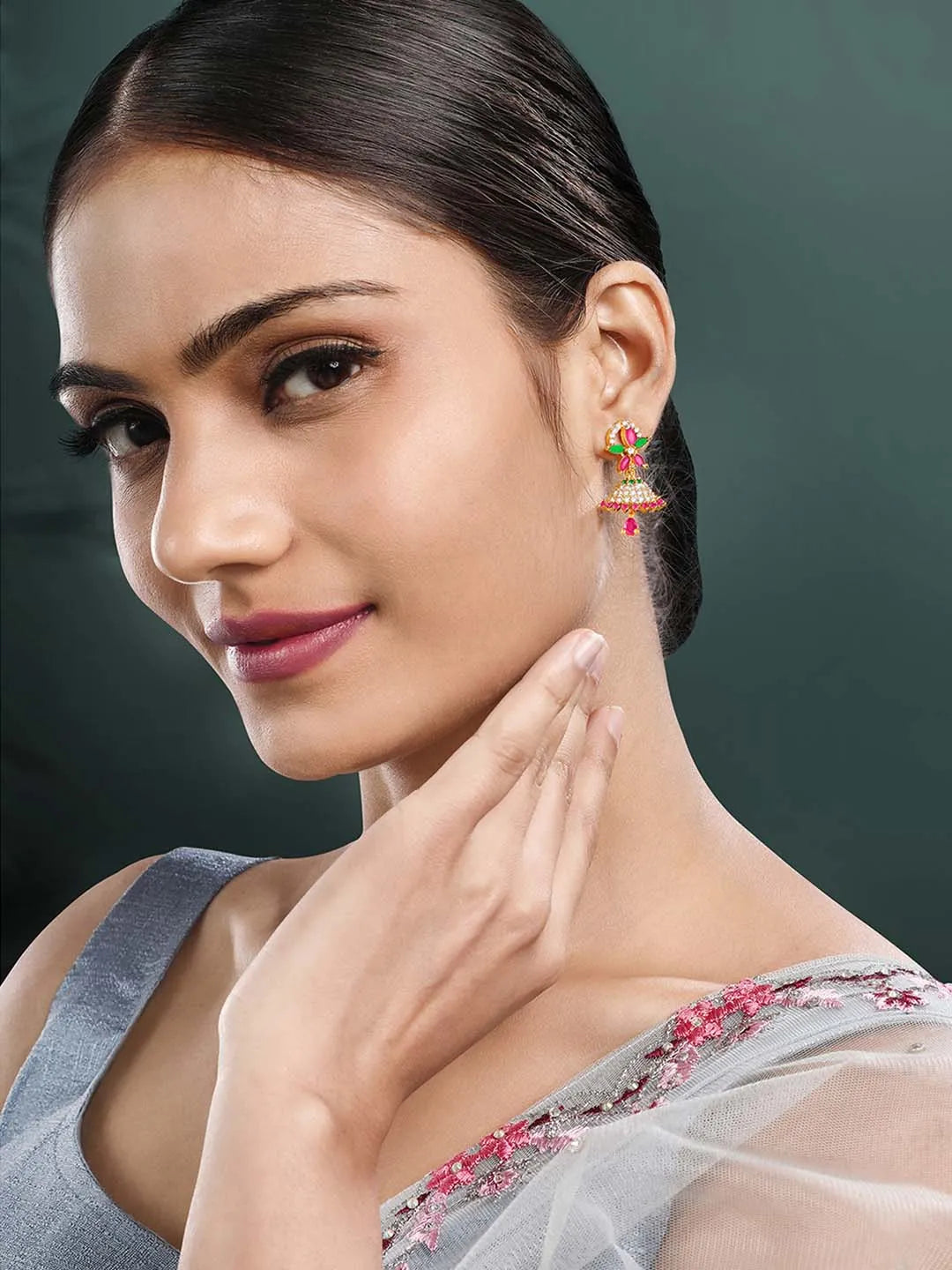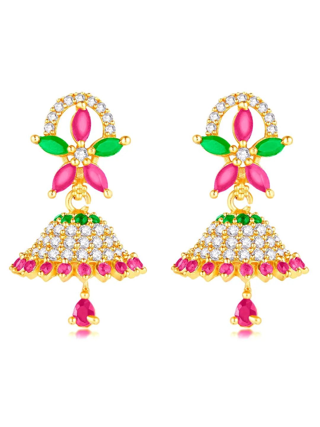 Product Name: Sparkling & Stylish Blush CZ Jhumki - Rani Pink Green