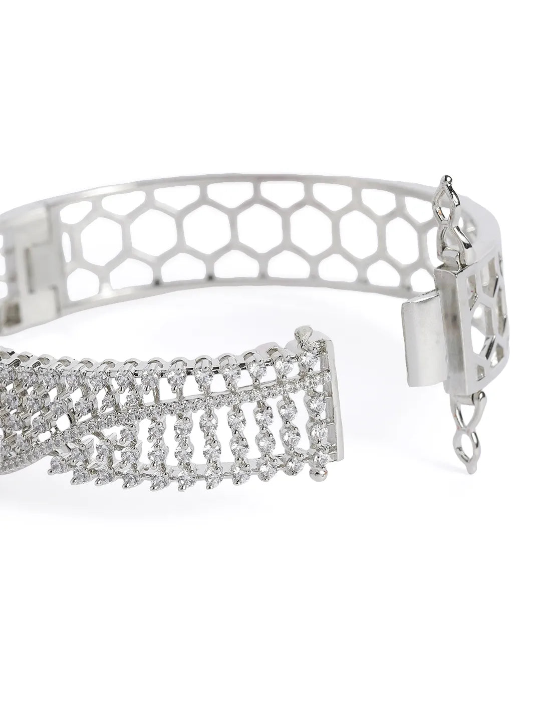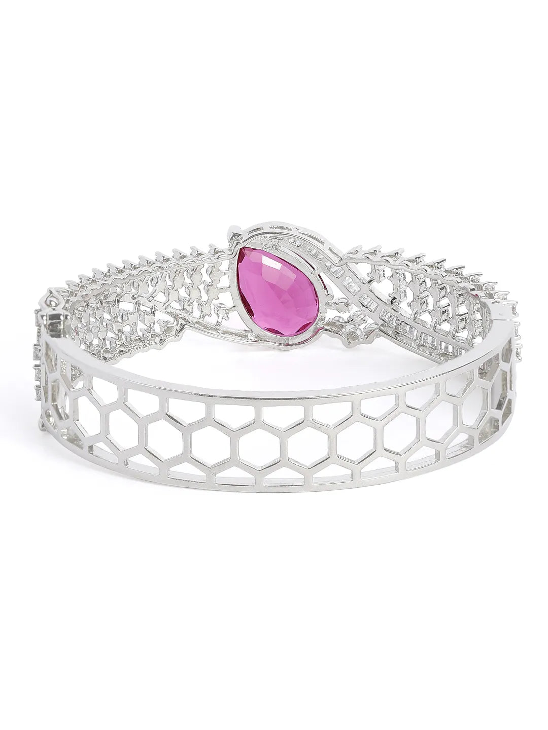 Product Name: Statement Kada with Ruby Teardrop Sparkle - Silver