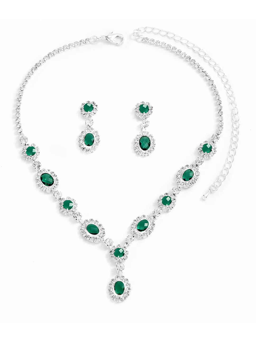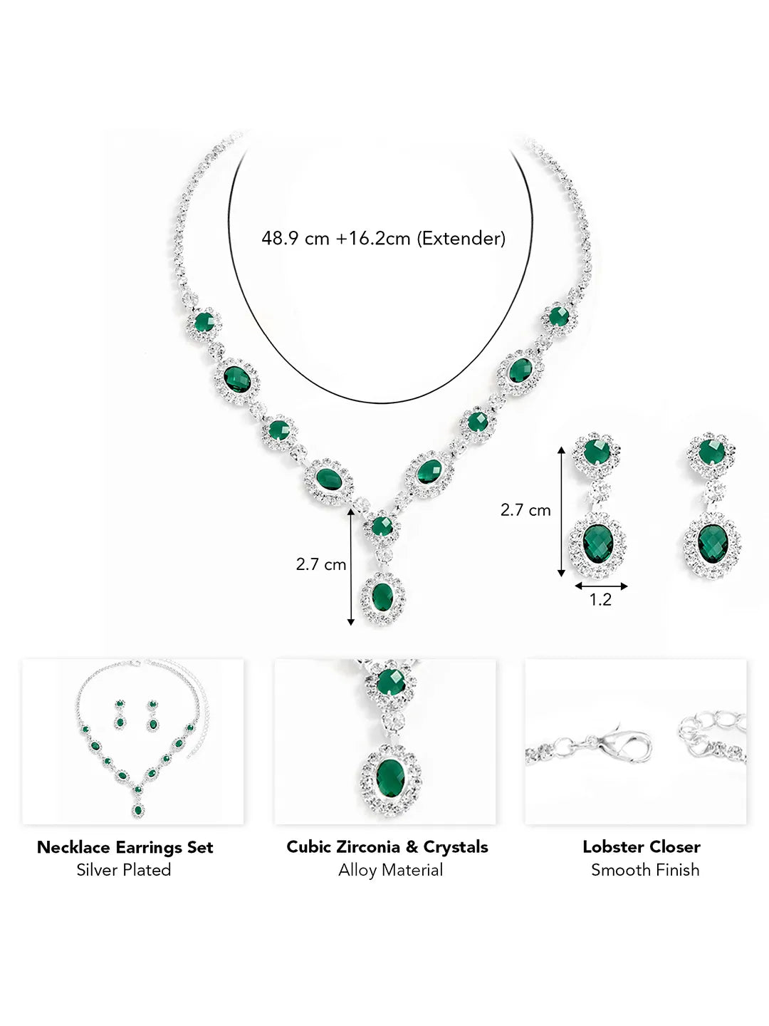 Product Name: Stunning Crystal CZ Drop Necklace Set - Green