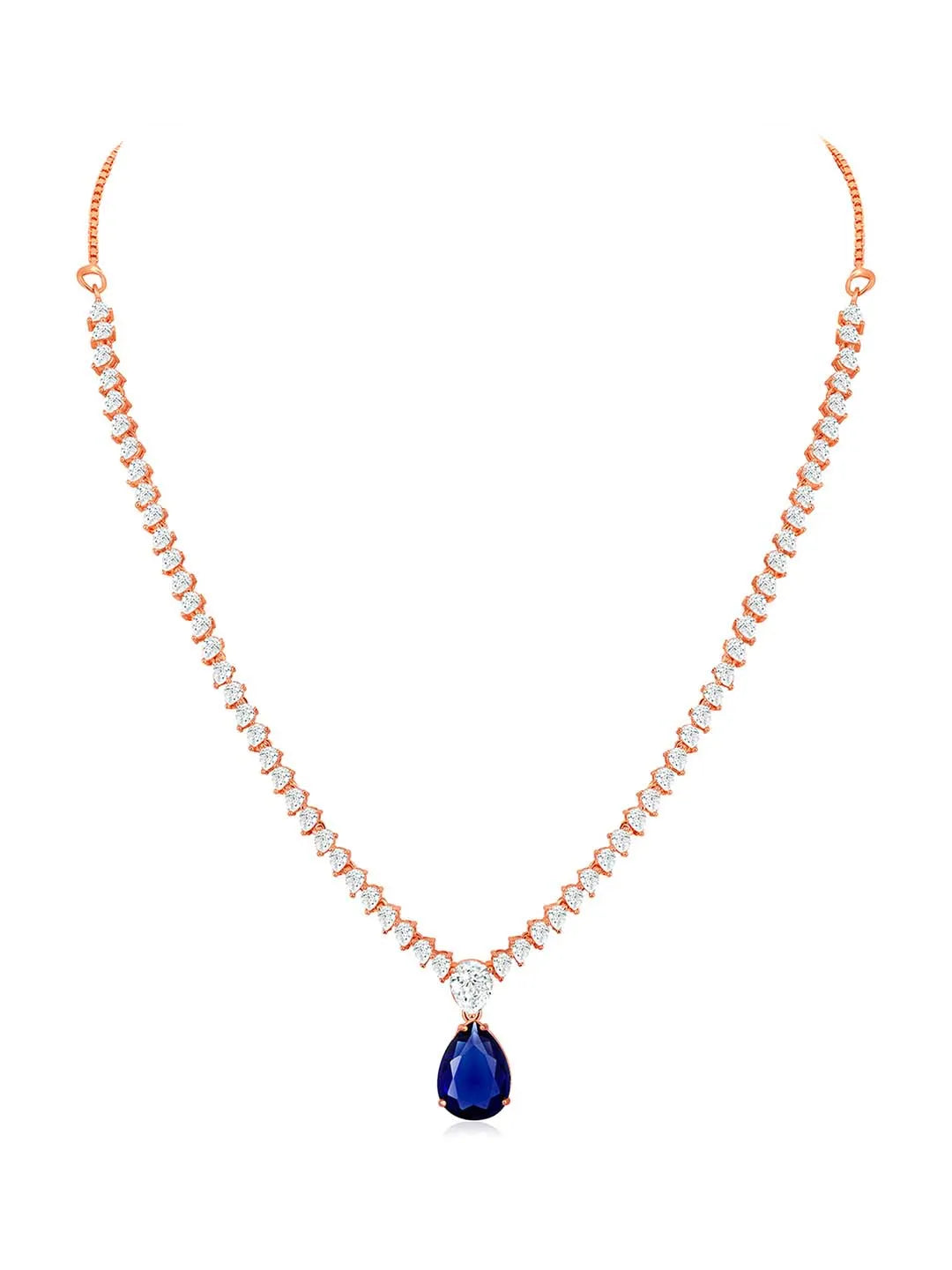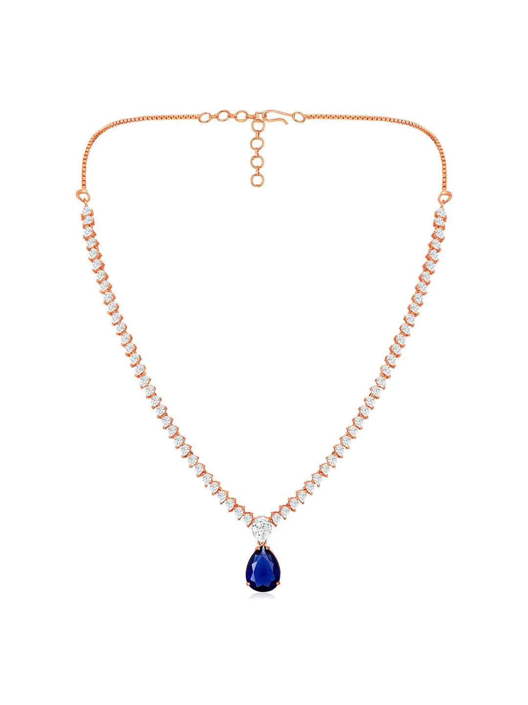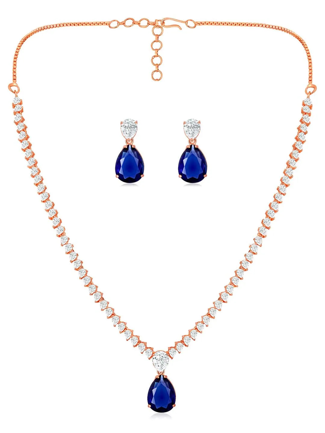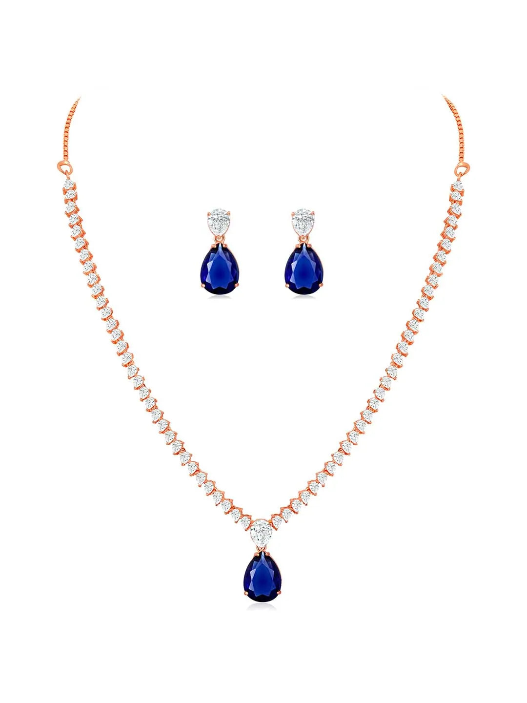 Product Name: CZ Blue Accent Rose Gold Drop Necklace Set