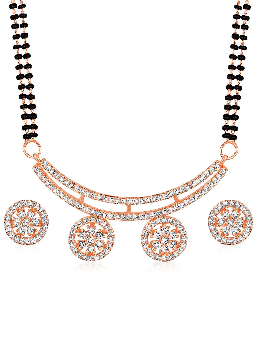 Product Name: Modern Double Vati Rose Gold CZ Magalsutra Set