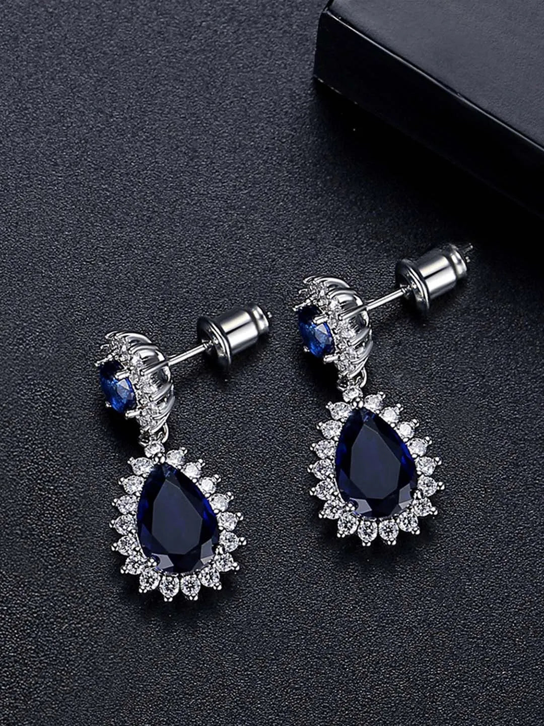 Product Name: Stunning Emerald Bliss Dangle Earrings - Silver Blue