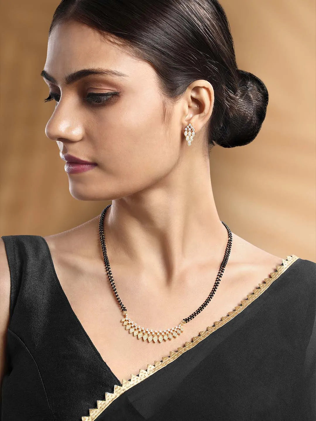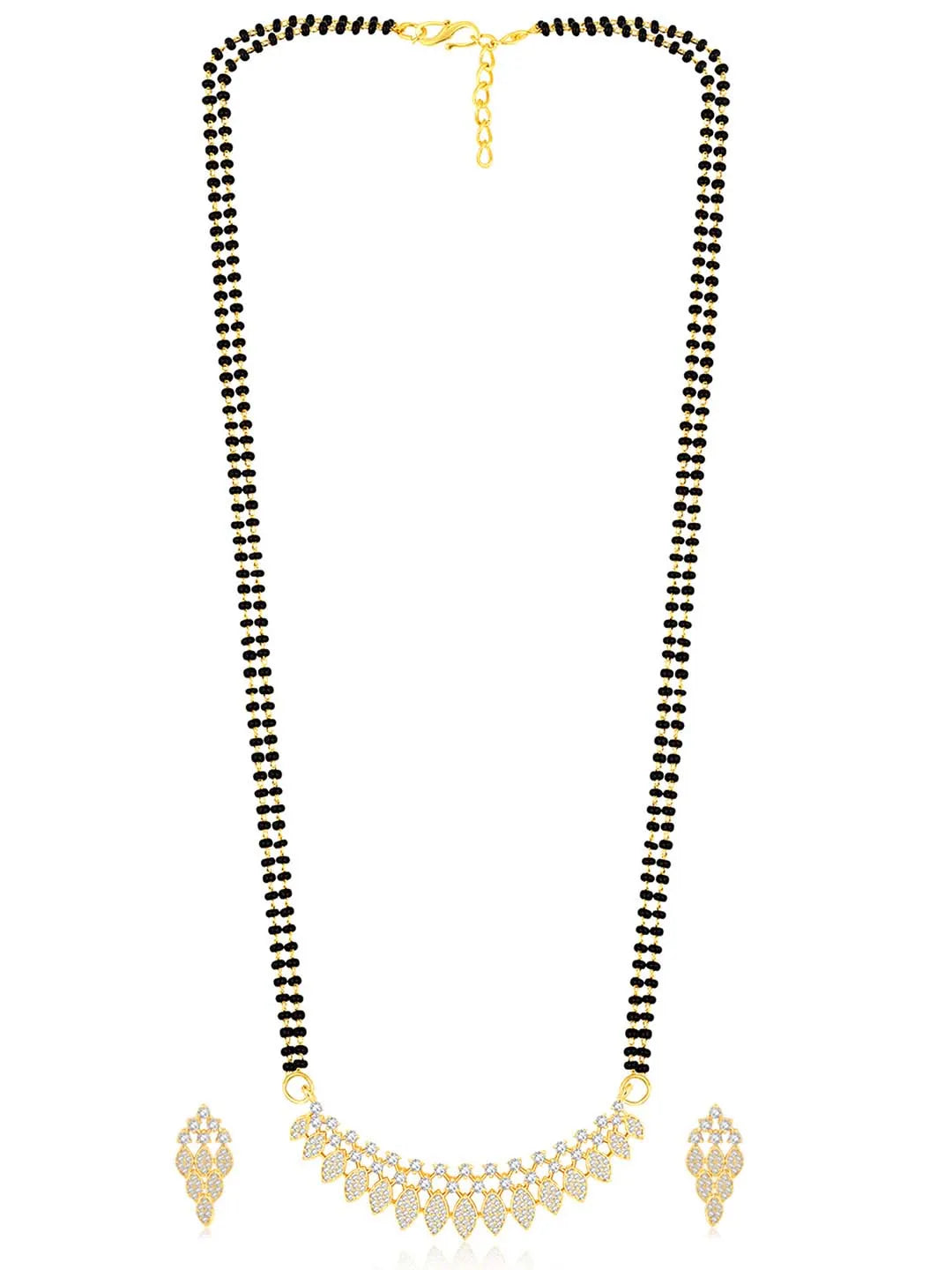 Product Name: CZ Layered Leaf Gold Mangalsutra Set