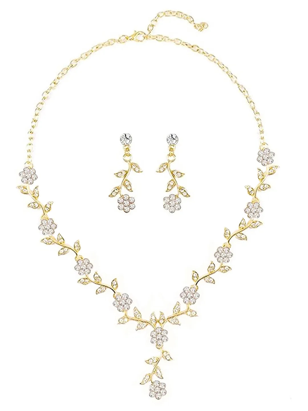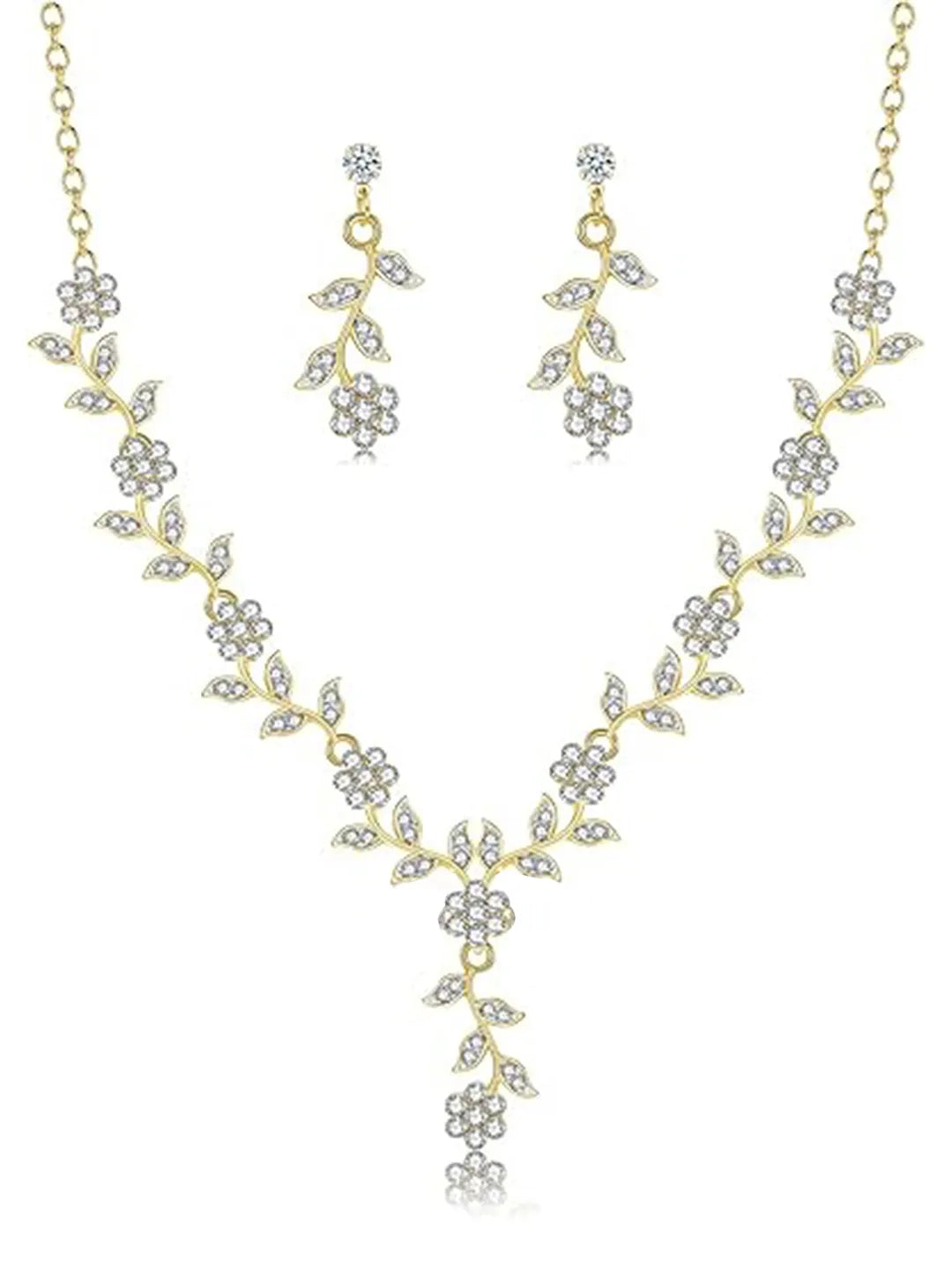 Product Name: Stylish Floral Statement CZ Necklace Set