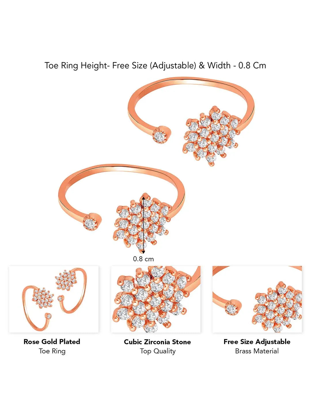 Product Name: Stylish Glamorous CZ Stone Toe Rings - Rose Gold