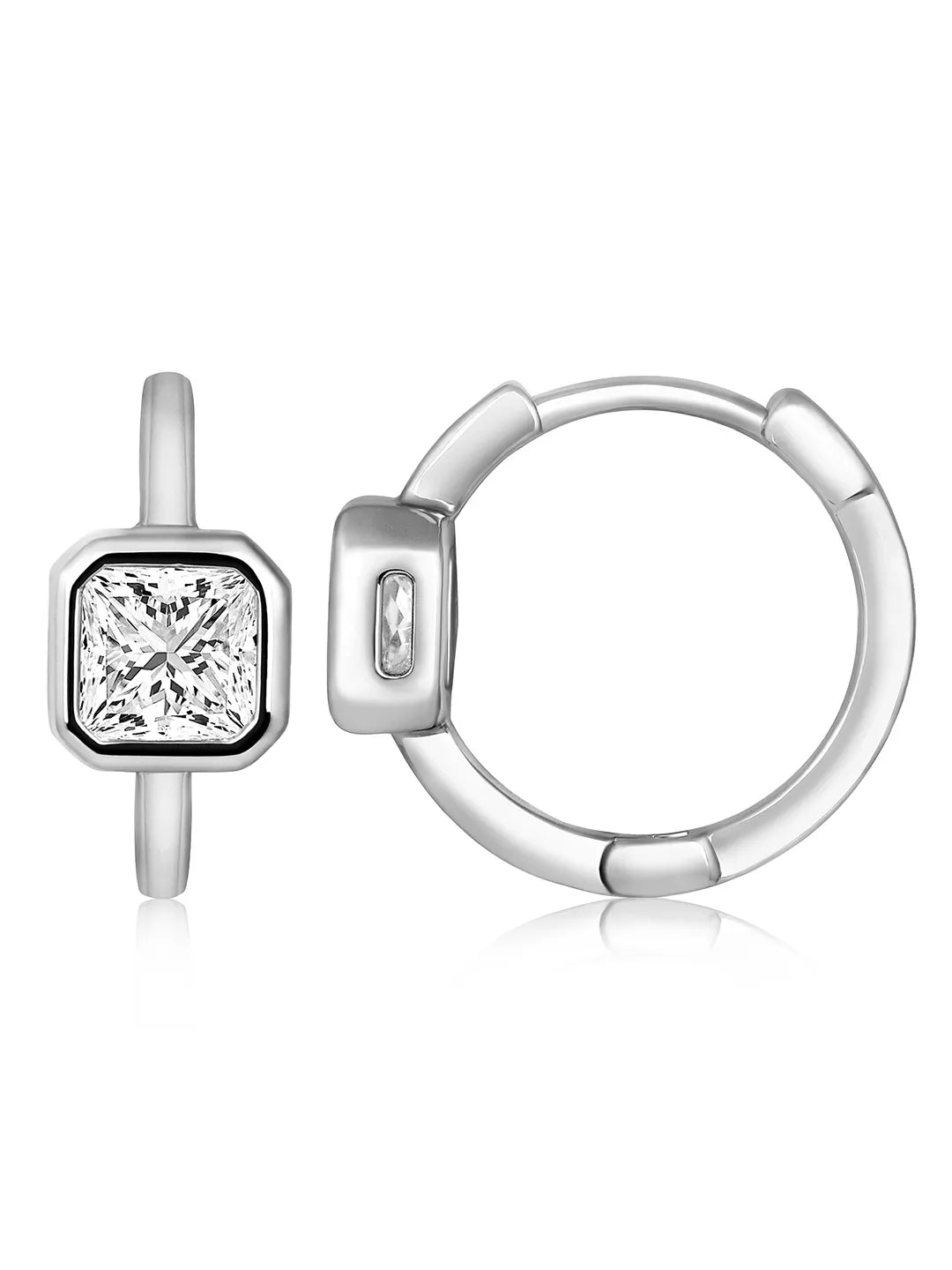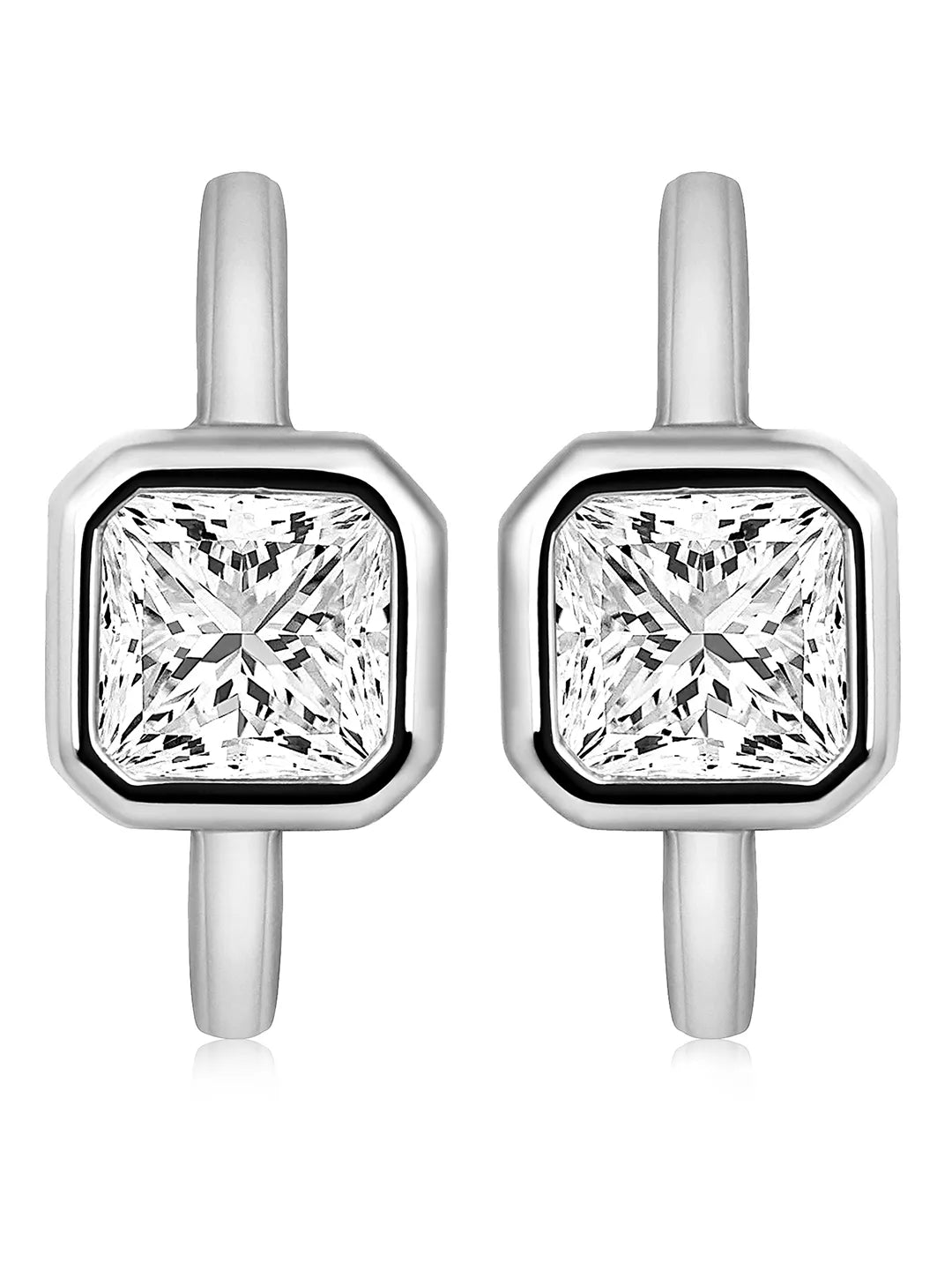 Product Name: Stylish Shimmering CZ Hoop Earrings - Silver